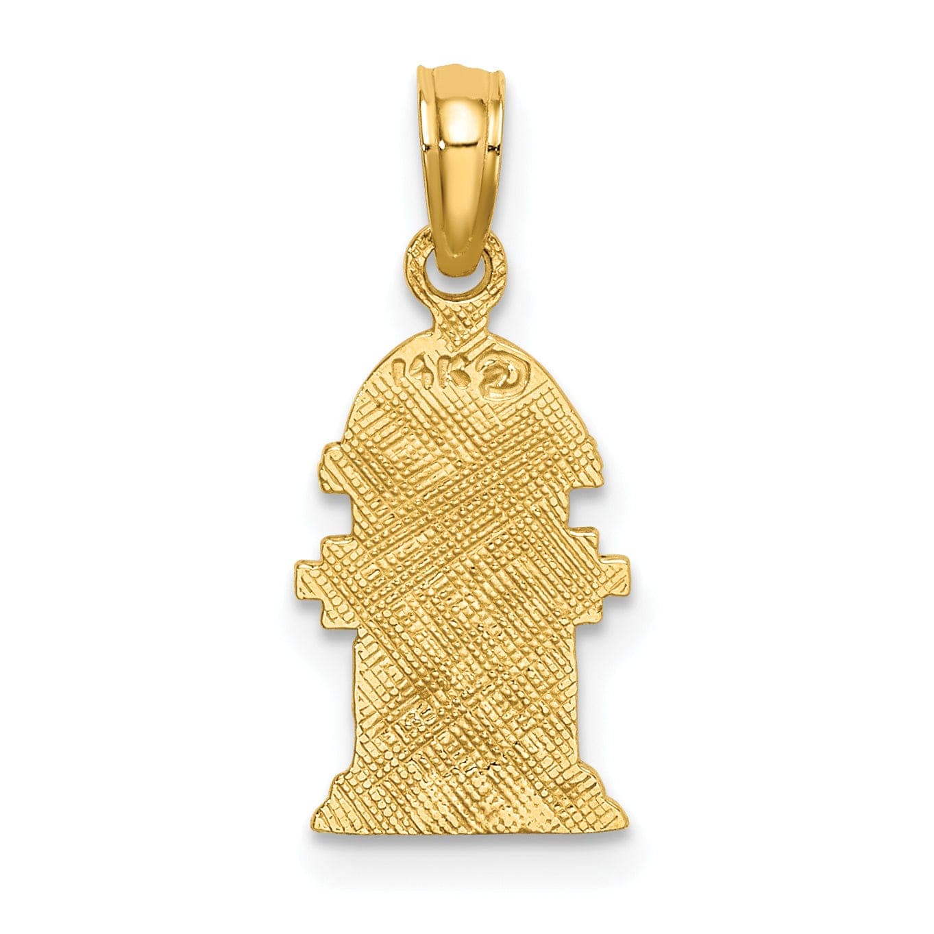 14K Yellow Gold Textured Polished Engraved Finish Fire Hydrant Charm Pendant