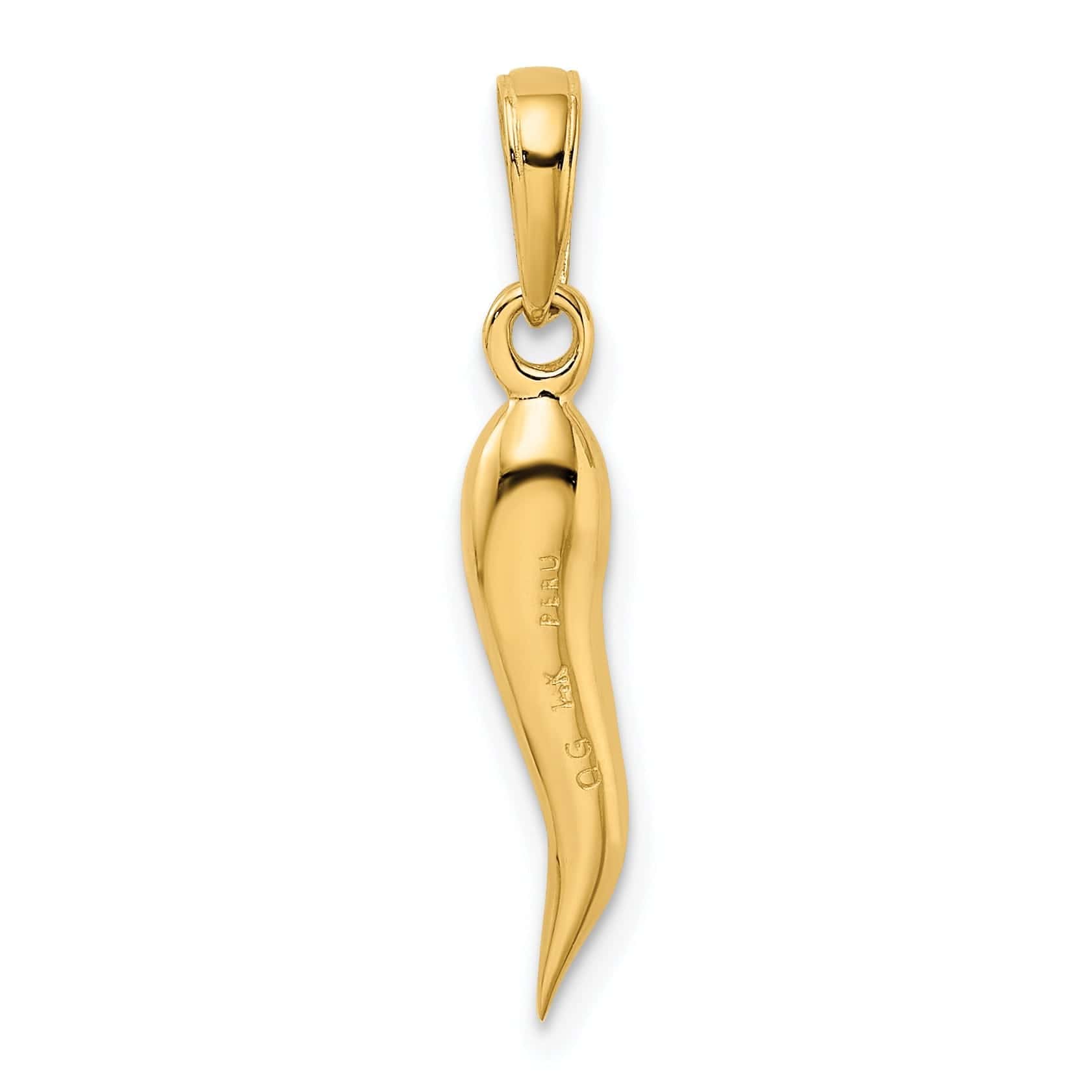 14k Yellow Gold Solid Polished Medium Size 3-D Italian Horn Pendant