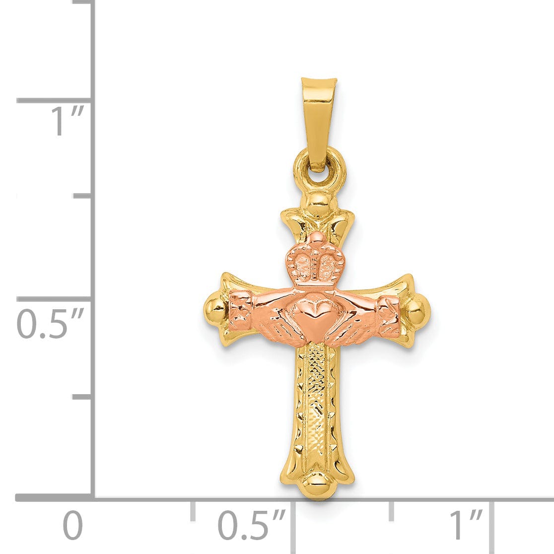 Lovely Rita's Pendants & Charms 14k Two-Tone Gold Claddagh Cross Pendant