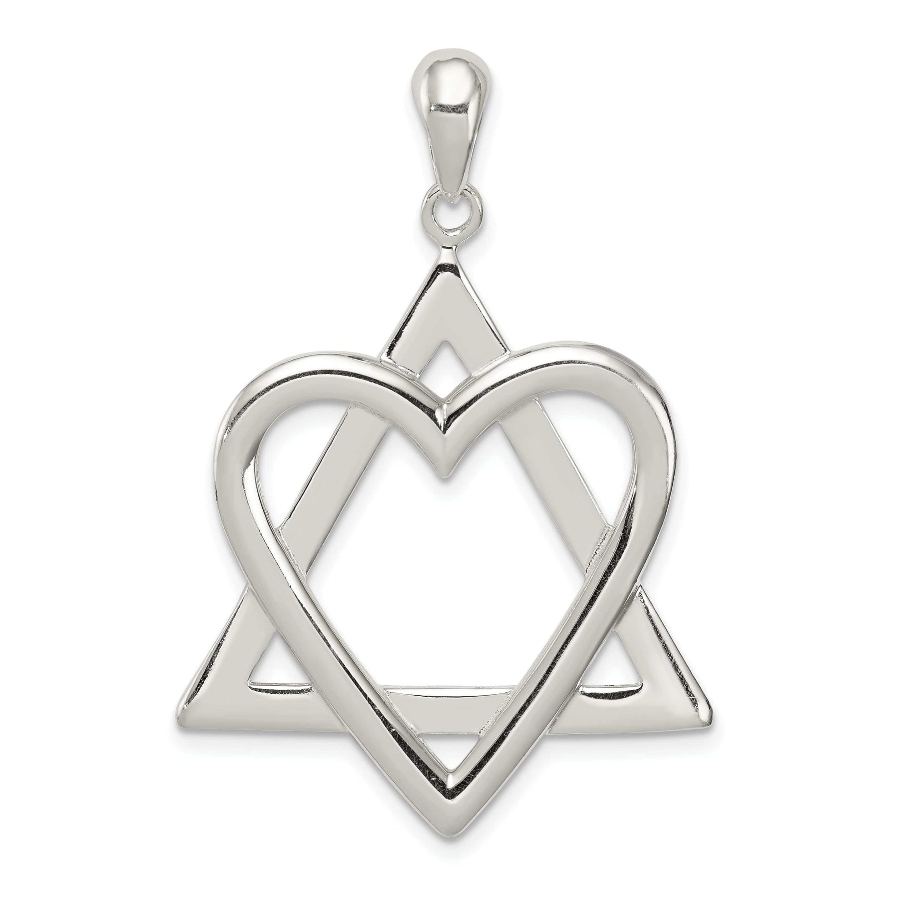 Crafted from high-quality sterling silver, this pendant shines brightly and will stand the test of time. The intricate design features the Star of David at the center of the heart, creating a unique and eye-catching look. Whether you wear it for religious significance or simply as a stylish addition to your outfit, this pendant is sure to make a statement.