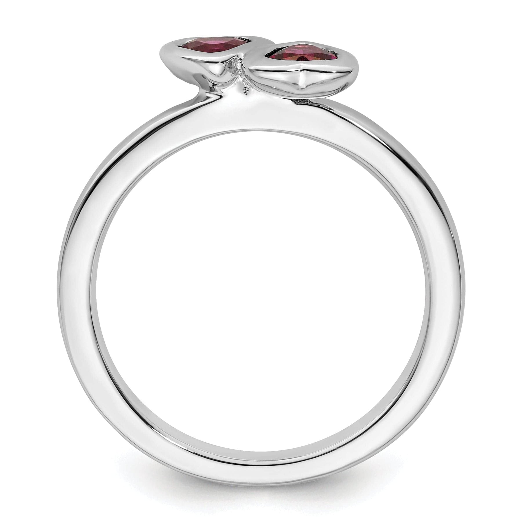 Sterling Silver Rhodolite Garnet Double Heart Ring