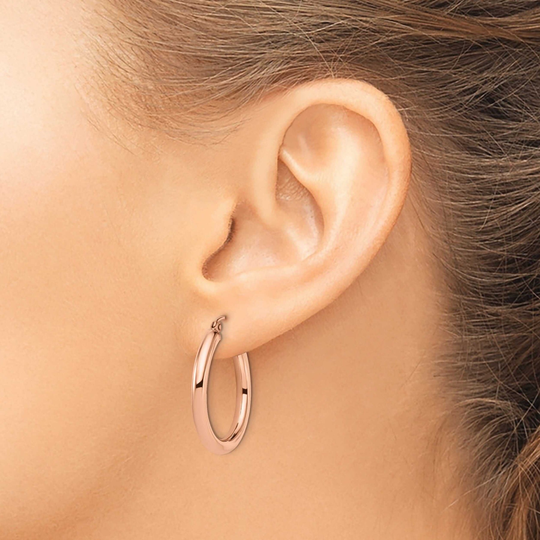 Add a touch of elegance and style to your jewelry collection with these stunning 14k Rose Gold 3mm Hoop Earrings from Leslie's. A must-have piece for any jewelry lover, these earrings are perfect for gifting or treating yourself to something special. Order yours today and elevate your style with these beautiful hoops.