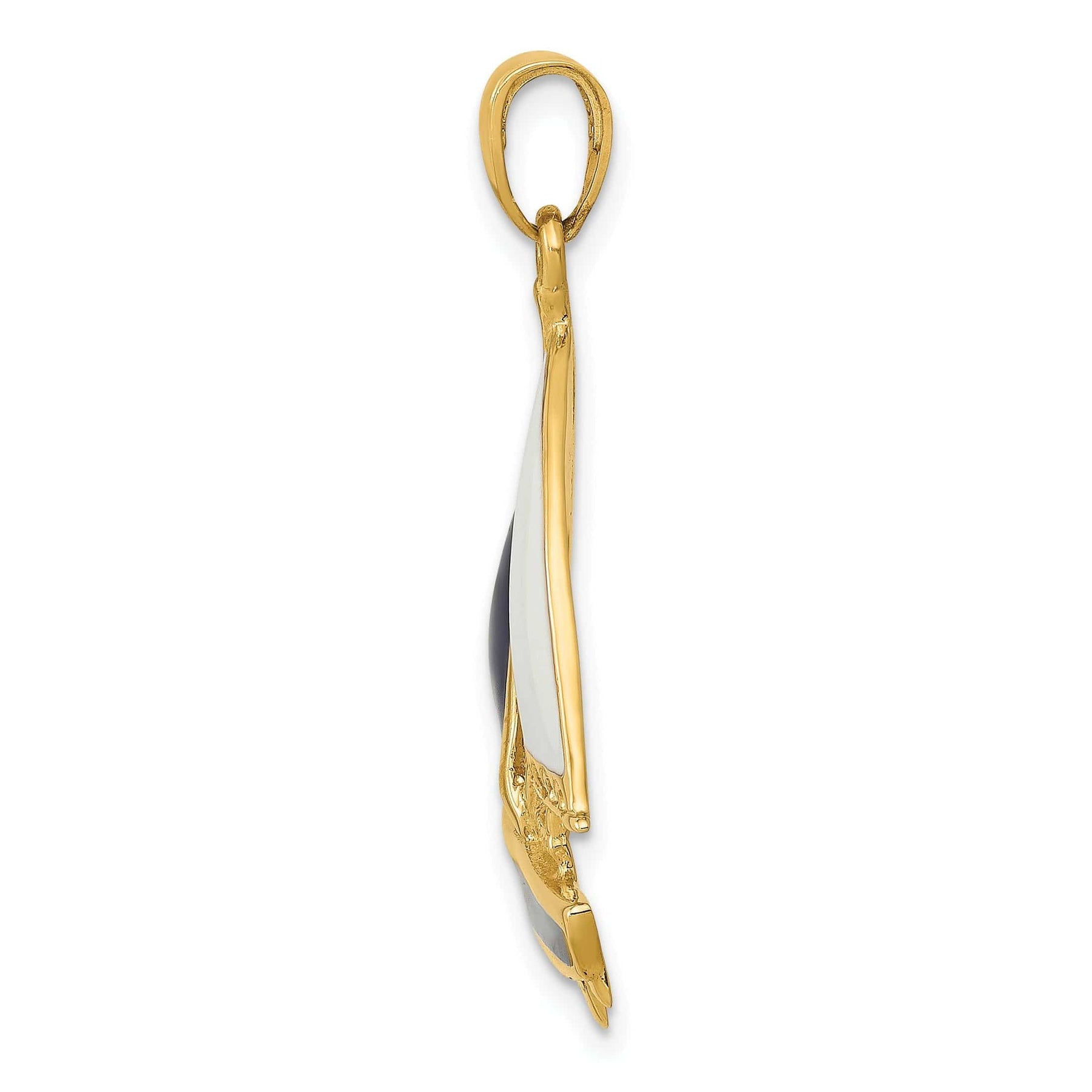 14k Yellow Gold 2-D Blue White Sailboat Pendant