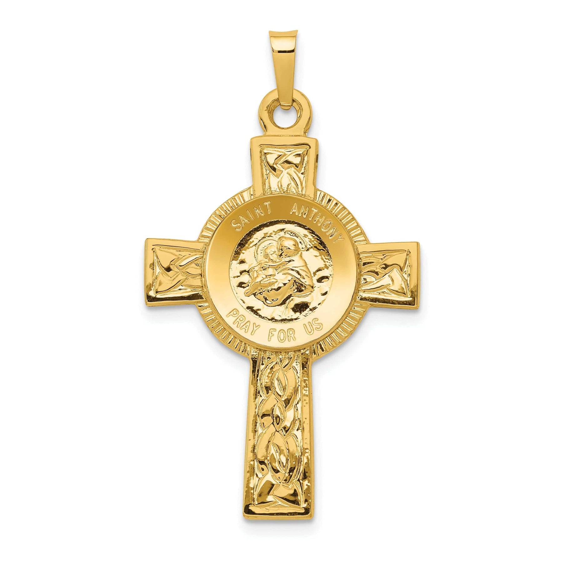 14k Yellow Gold Cross St Anthony Medal Pendant
