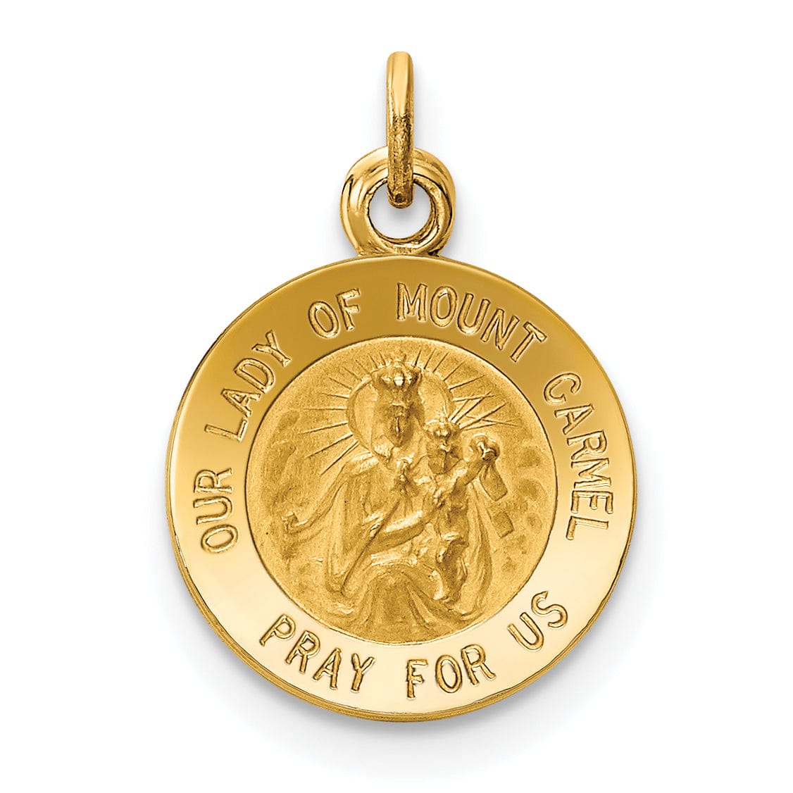 Whether you're looking for a meaningful gift for a loved one or a beautiful addition to your own jewelry collection, this 14k yellow gold Our Lady of Mt. Carmel medal pendant is a perfect choice. Add a touch of elegance and devotion to your look with this exquisite piece.