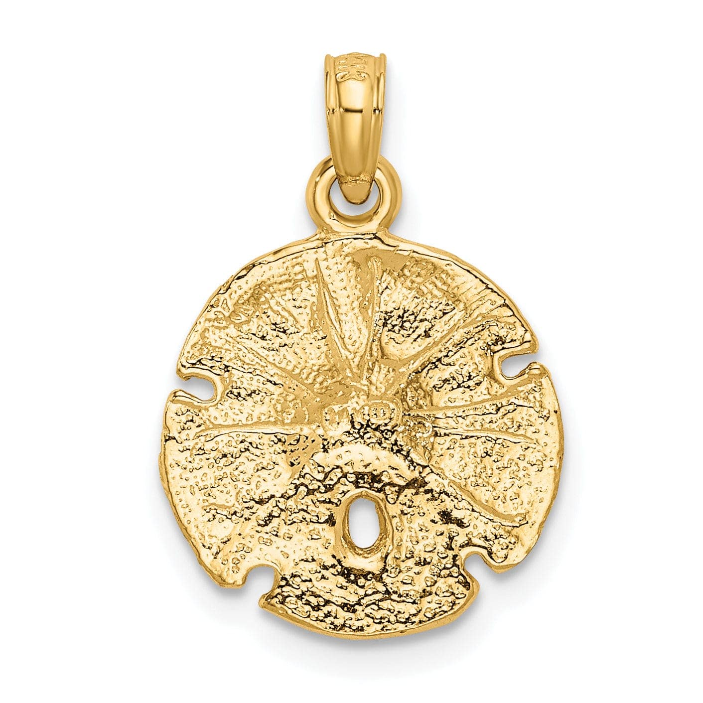 Add a touch of the sea to your jewelry collection with our stunning 14K Yellow Gold Solid Polished Textured Finish Sand Sea Dollar Charm Pendant. Order yours today and make a splash with this beautiful piece!