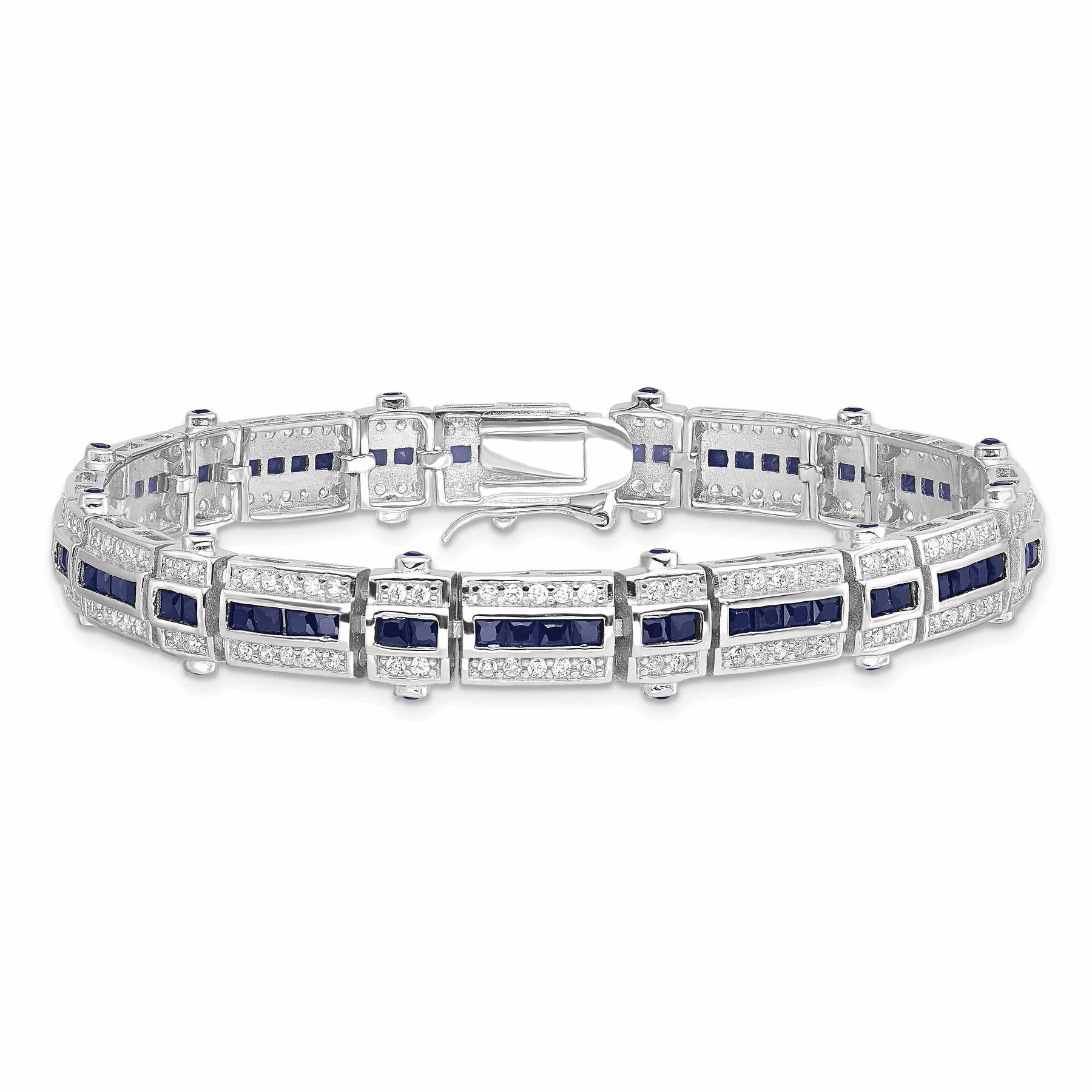 Elevate your jewelry collection with this stunning Sterling Silver Polished Finish Rhodium Plated Sapphire and Cubic Zirconia Bracelet. This exquisite bracelet features a dazzling combination of sapphire and cubic zirconia stones, totaling 5.88 carats in weight. Each stone is carefully set in a high-quality sterling silver setting, polished to perfection for a radiant shine.