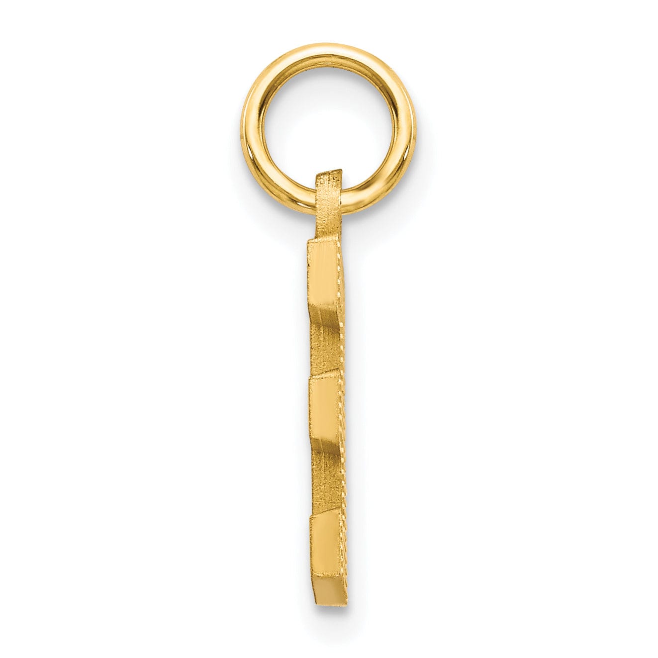 14k Yellow Gold Satin Diamond Cut Finish Letter E Initial Charm Pendant
