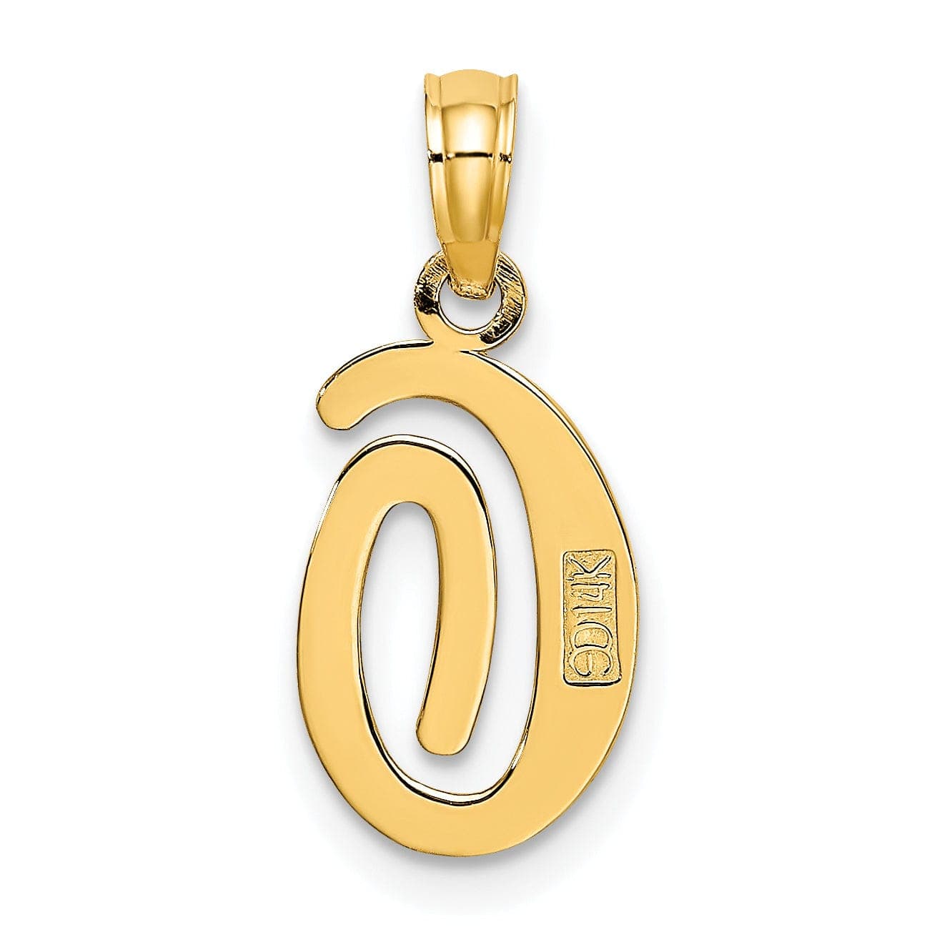14K Yellow Gold Fancy Script Design Letter O Initial Charm Pendant