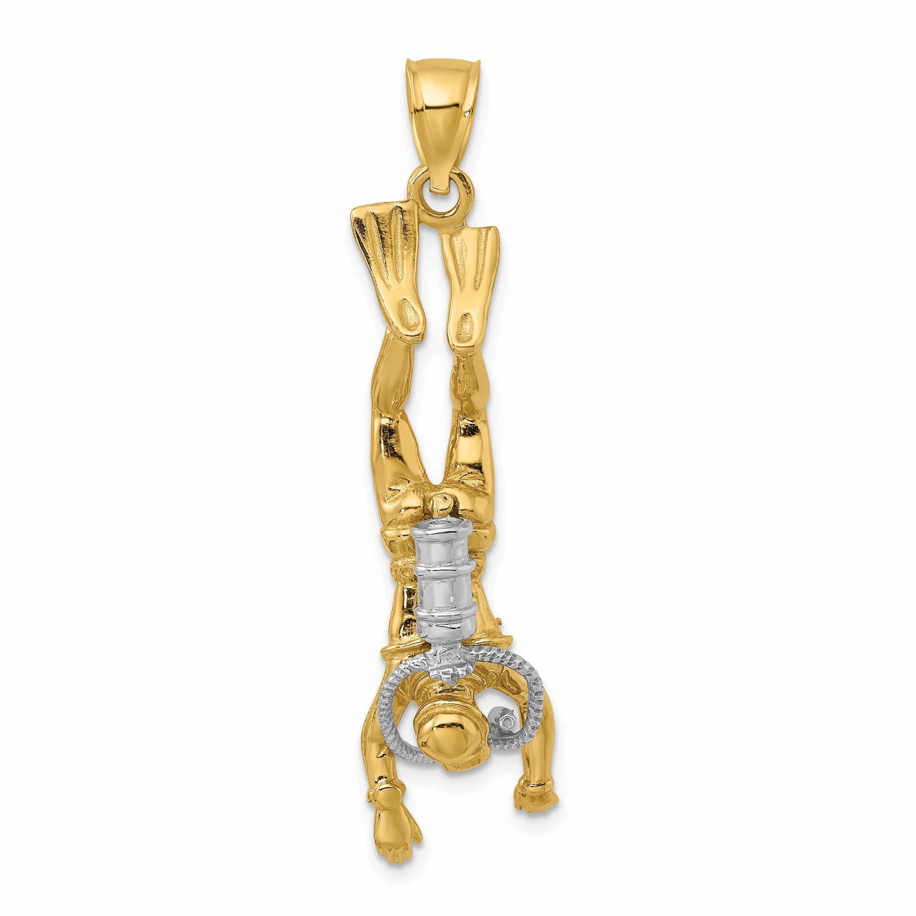 14k Two-Tone Gold Polished Finish 3-Dimensional Female Scuba Diver Charm Pendant