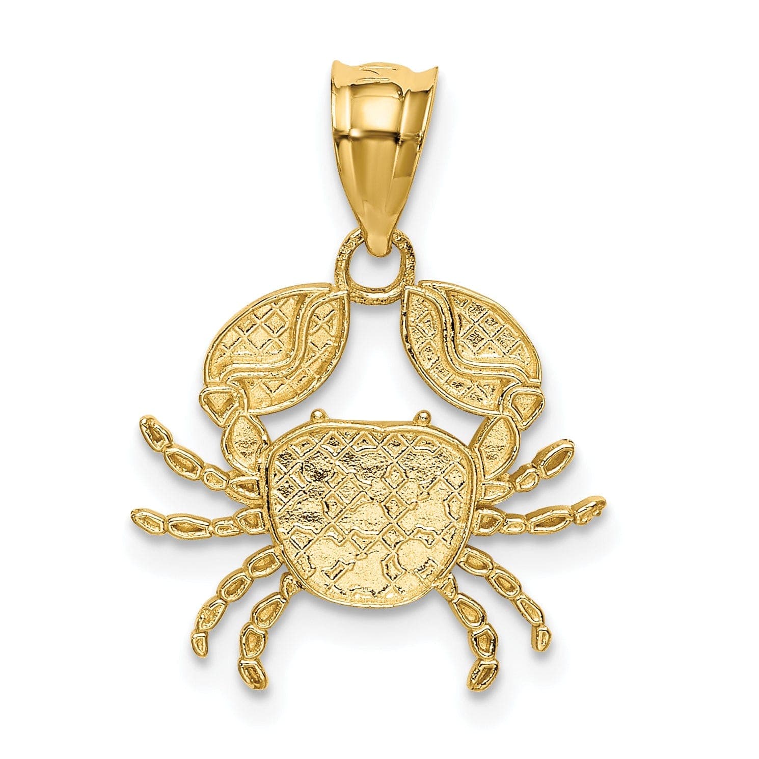 14K Yellow Gold White Rhodium Solid Polished Diamond-Cut Finish Crab Charm Pendant