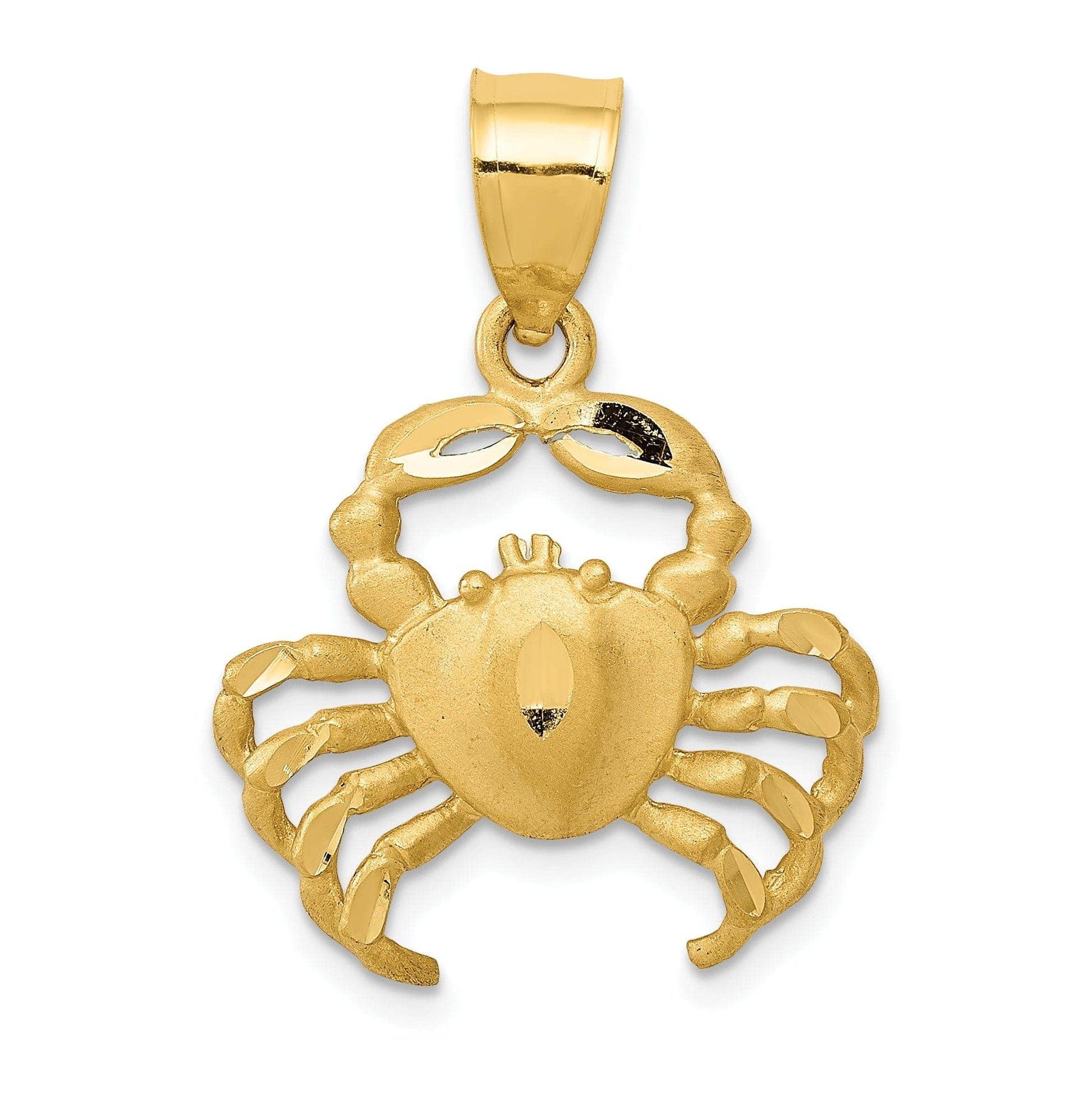 Invest in this timeless and beautiful 14K Yellow Gold White Rhodium Solid Polished Diamond-Cut Satin Finish Crab Charm Pendant and elevate your jewelry collection today.