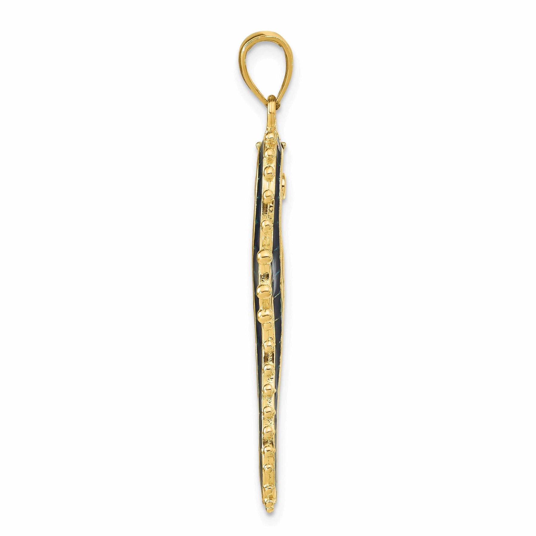 14k Yellow Gold Solid 3-Dimensional Textured Polished Blue Enameled Finish Men's Seahorse Charm Pendant