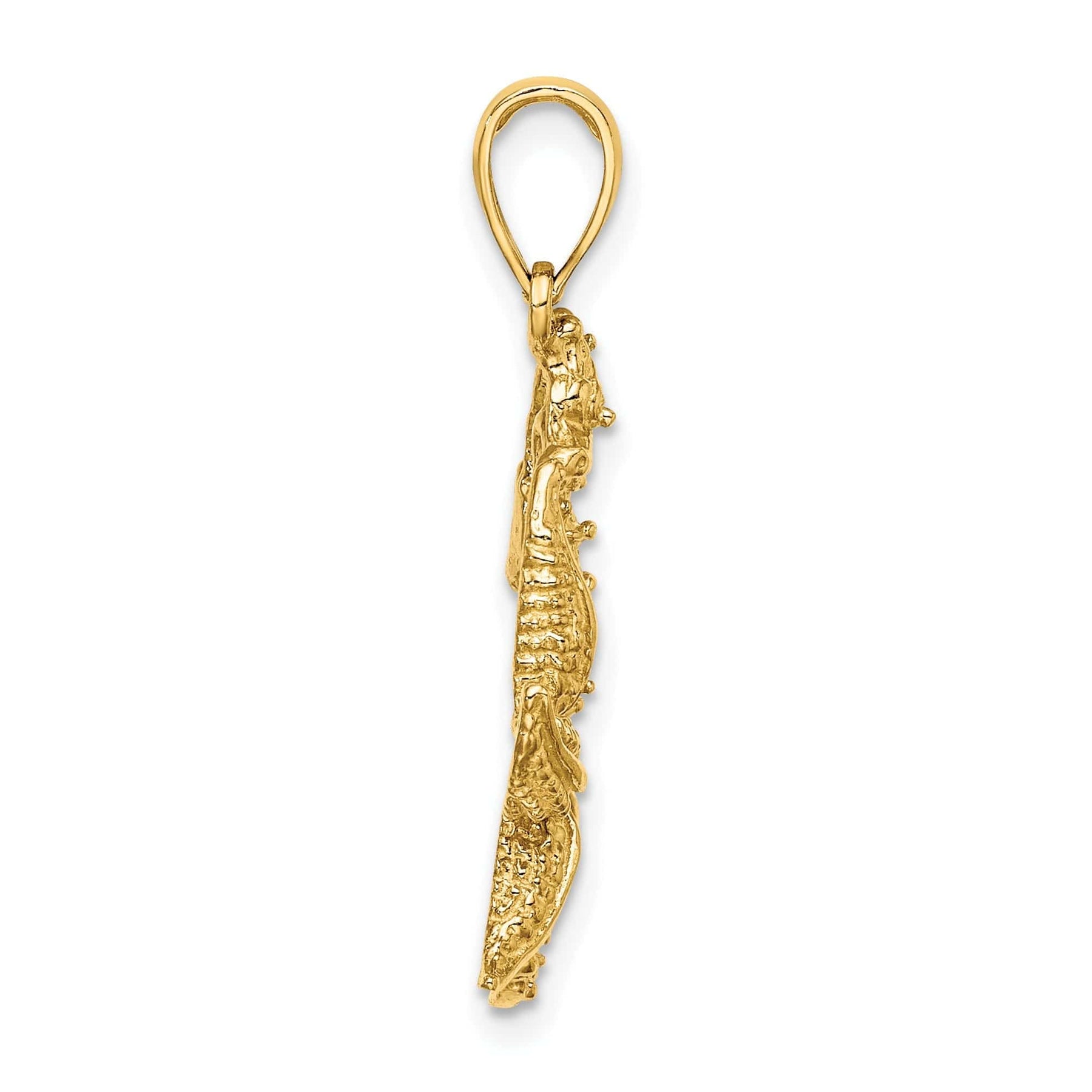 14K Yellow Gold Solid Polished Texture Finish Starfish and Seahorse Design Charm Pendant