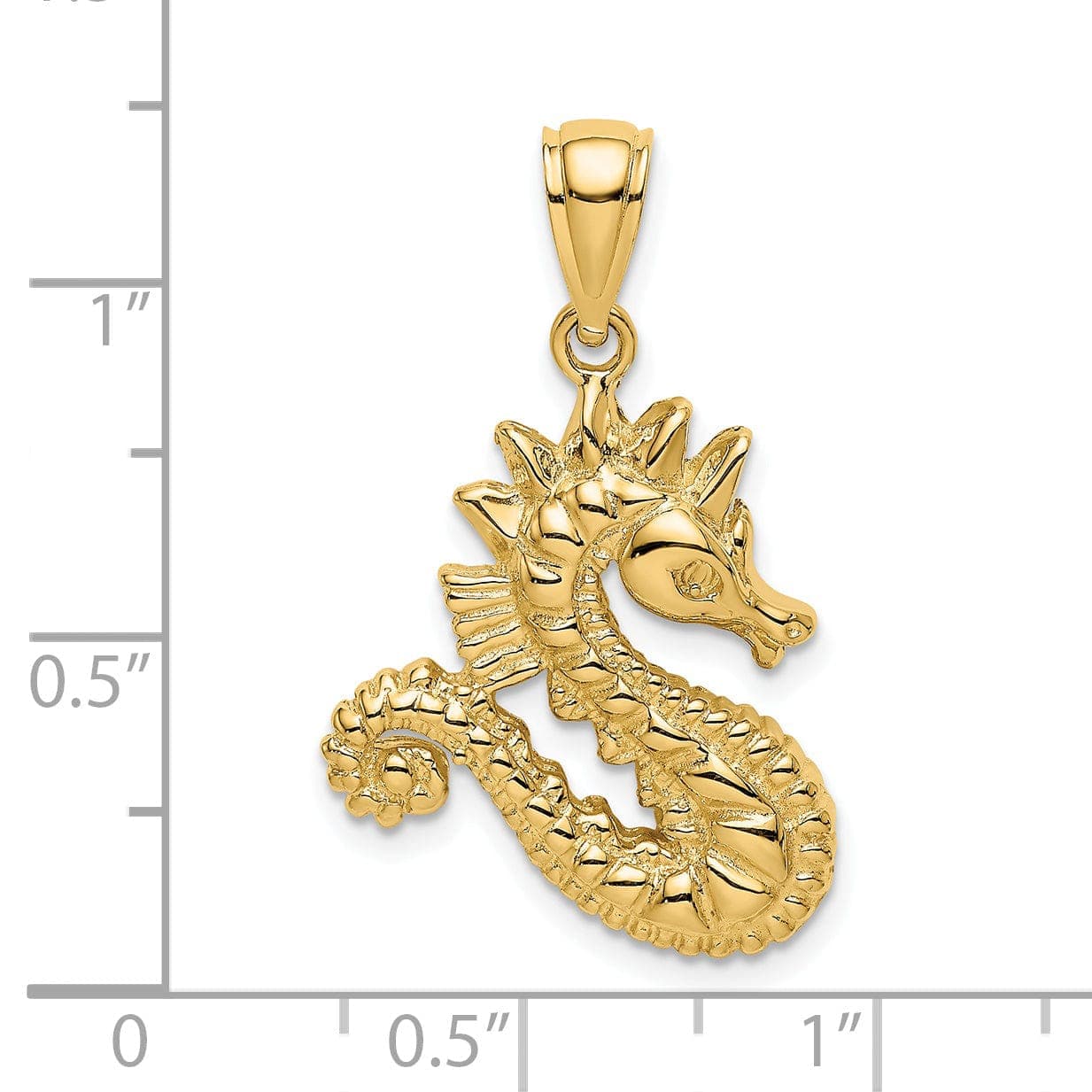 14K Yellow Gold Solid Texture Polished Finish Opend Back Size Seahorse Charm Pendant