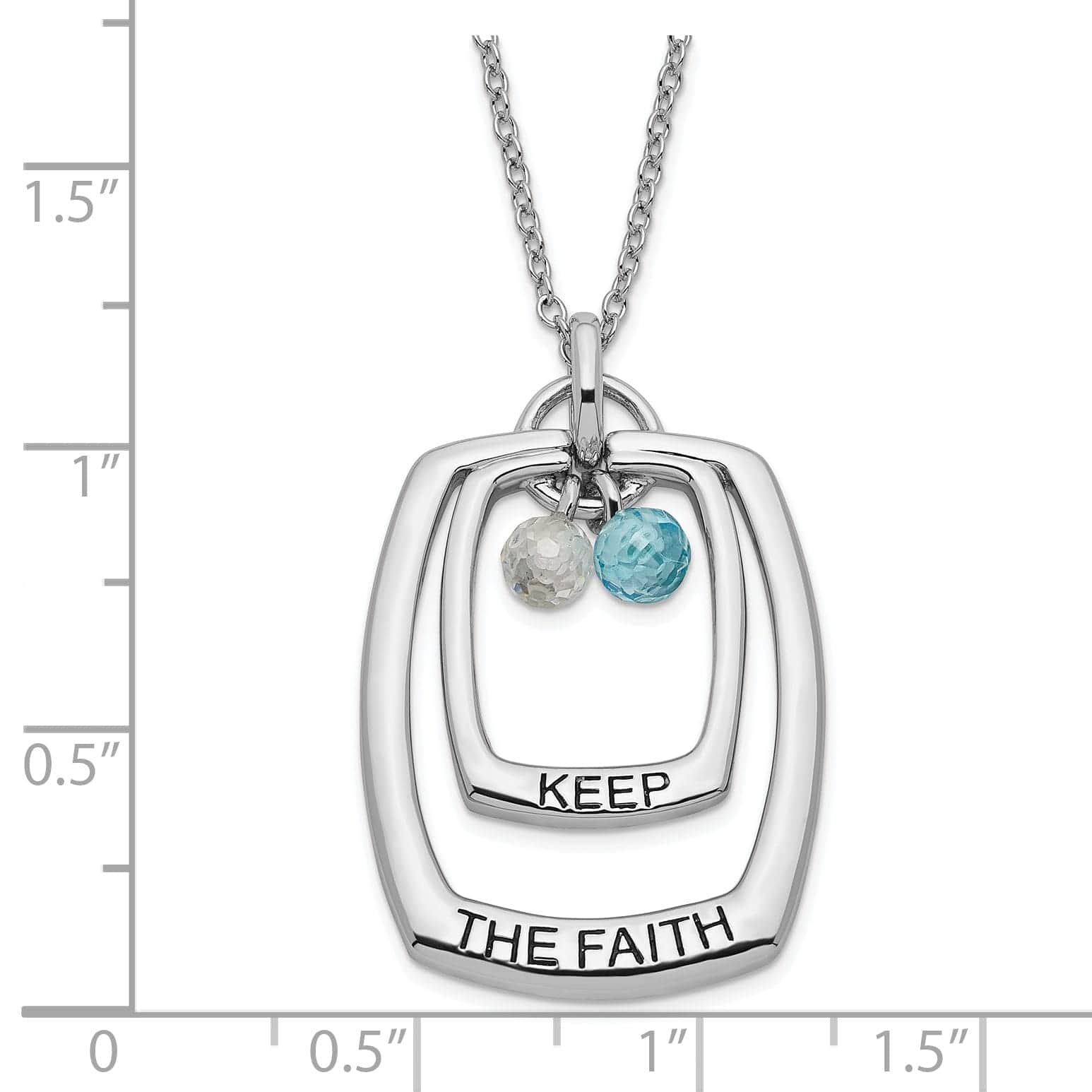 Elevate your style with our stunning Sterling Silver Antiqued Cubic Zirconia Keep The Faith Necklace. This beautifully crafted necklace features a delicate pendant with the words "Keep The Faith" in elegant script, adorned with sparkling cubic zirconia stones for a touch of glamour. Made from high-quality sterling silver, this necklace has an antiqued finish for a vintage-inspired look.