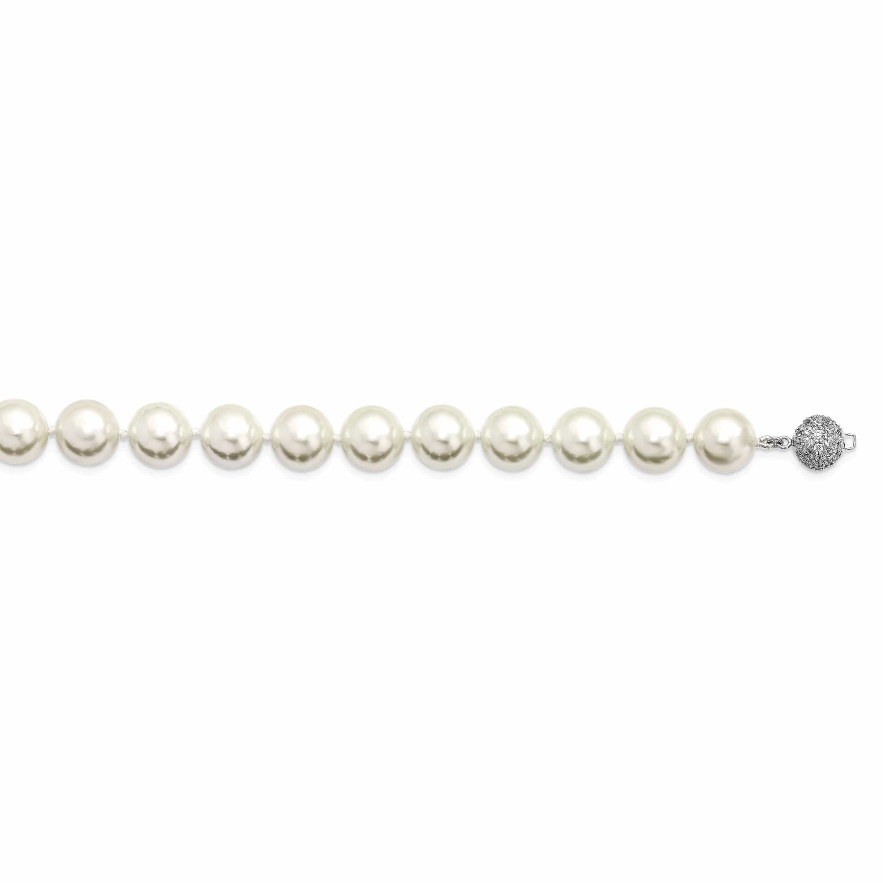 Elevate your look with the stunning Majestik White Shell Pearl and Cubic Zirconia Clasp Necklace. Crafted from high-quality sterling silver, this exquisite piece features lustrous white shell pearls that radiate elegance and sophistication.