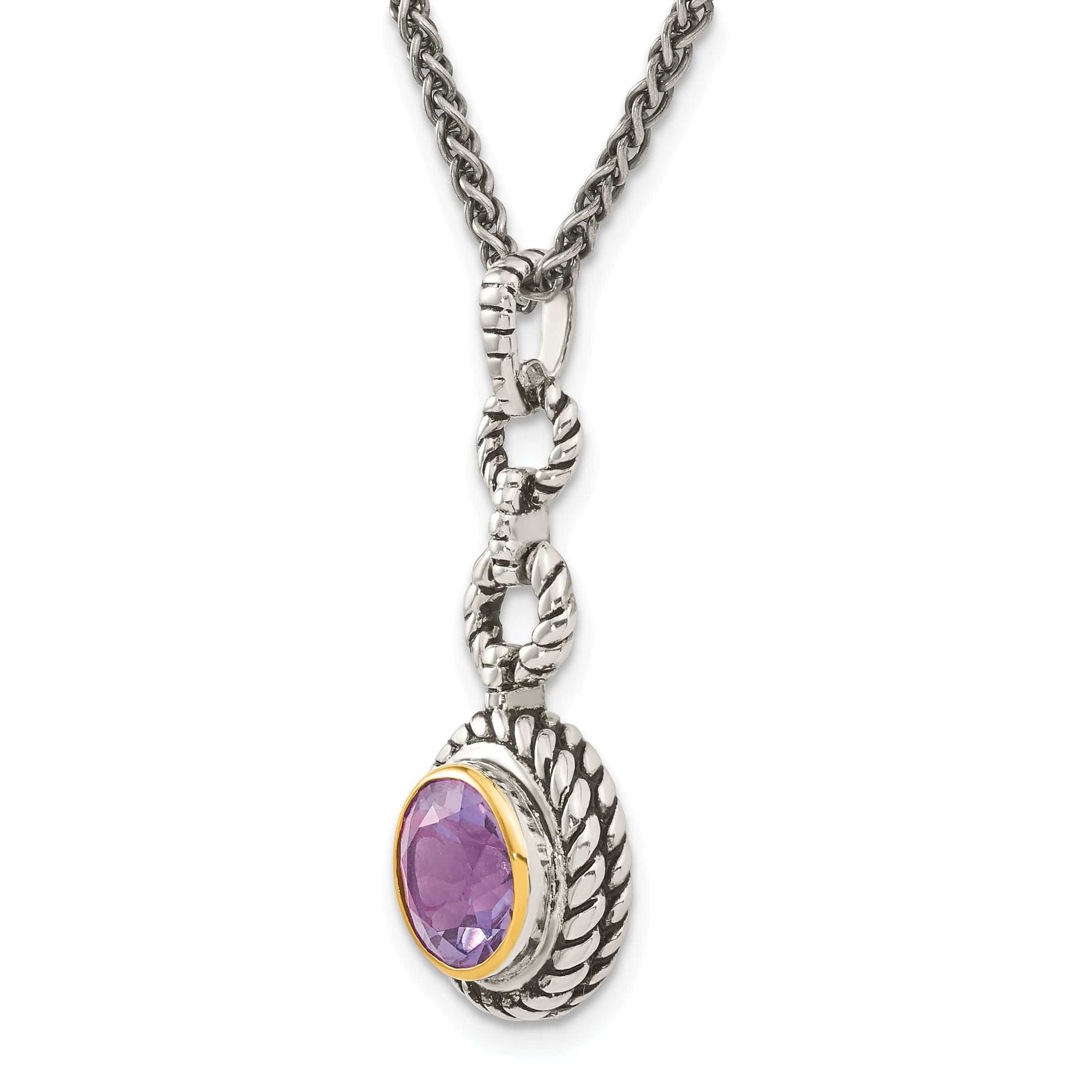 Whether you're dressing up for a special occasion or simply adding a touch of glamour to your everyday look, this Sterling Silver Gold Accent Amethyst Necklace is sure to turn heads. A timeless piece that will be cherished for years to come, this necklace is a must-have for any jewelry collection. Treat yourself or surprise a loved one with this exquisite necklace today.