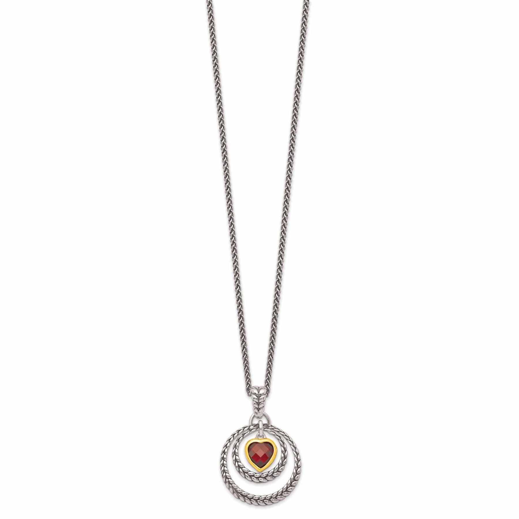 Add a touch of sophistication and elegance to your jewelry collection with our stunning Sterling Silver Gold-plated Garnet Necklace. This exquisite piece features a 2.54 carat heart-shaped garnet gemstone set in lustrous gold-plated sterling silver. With an average weight of 8 grams and a width of 23 millimeters, this necklace is the perfect accessory to elevate any outfit.