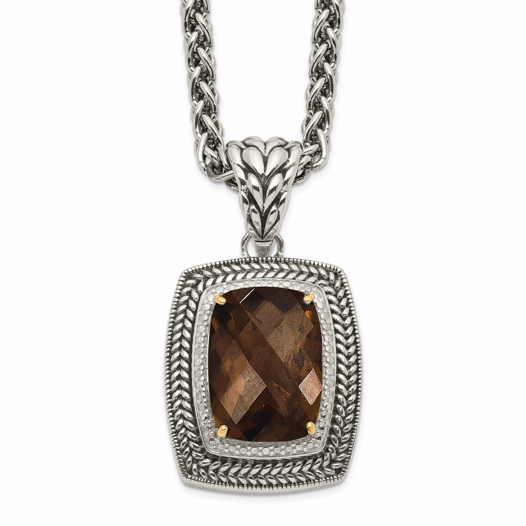 Whether you're treating yourself or looking for a thoughtful gift for someone special, this Sterling Silver with 14k Yellow Gold Smokey Quartz Necklace is sure to impress. Add a touch of sophistication and glamour to your look with this stunning piece.