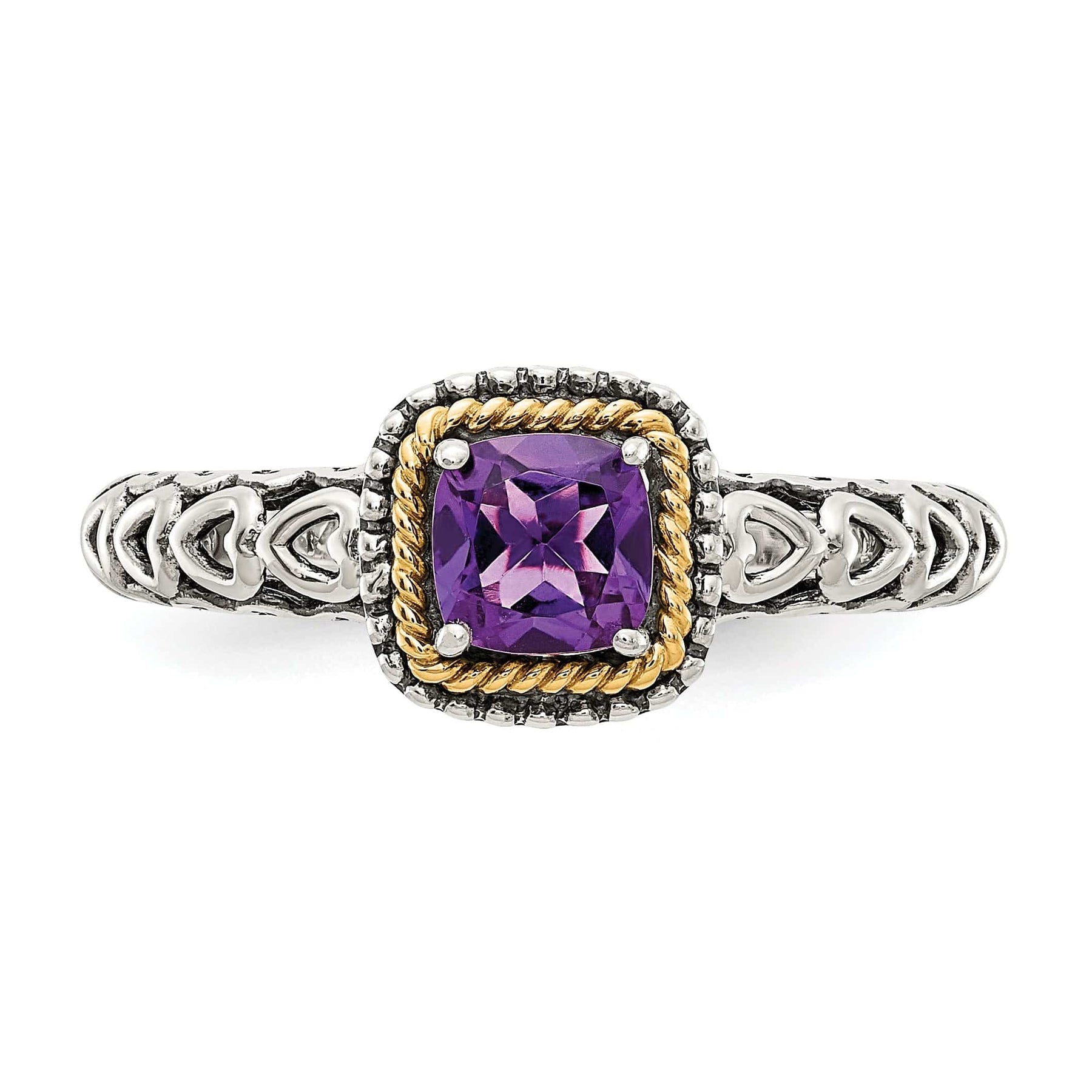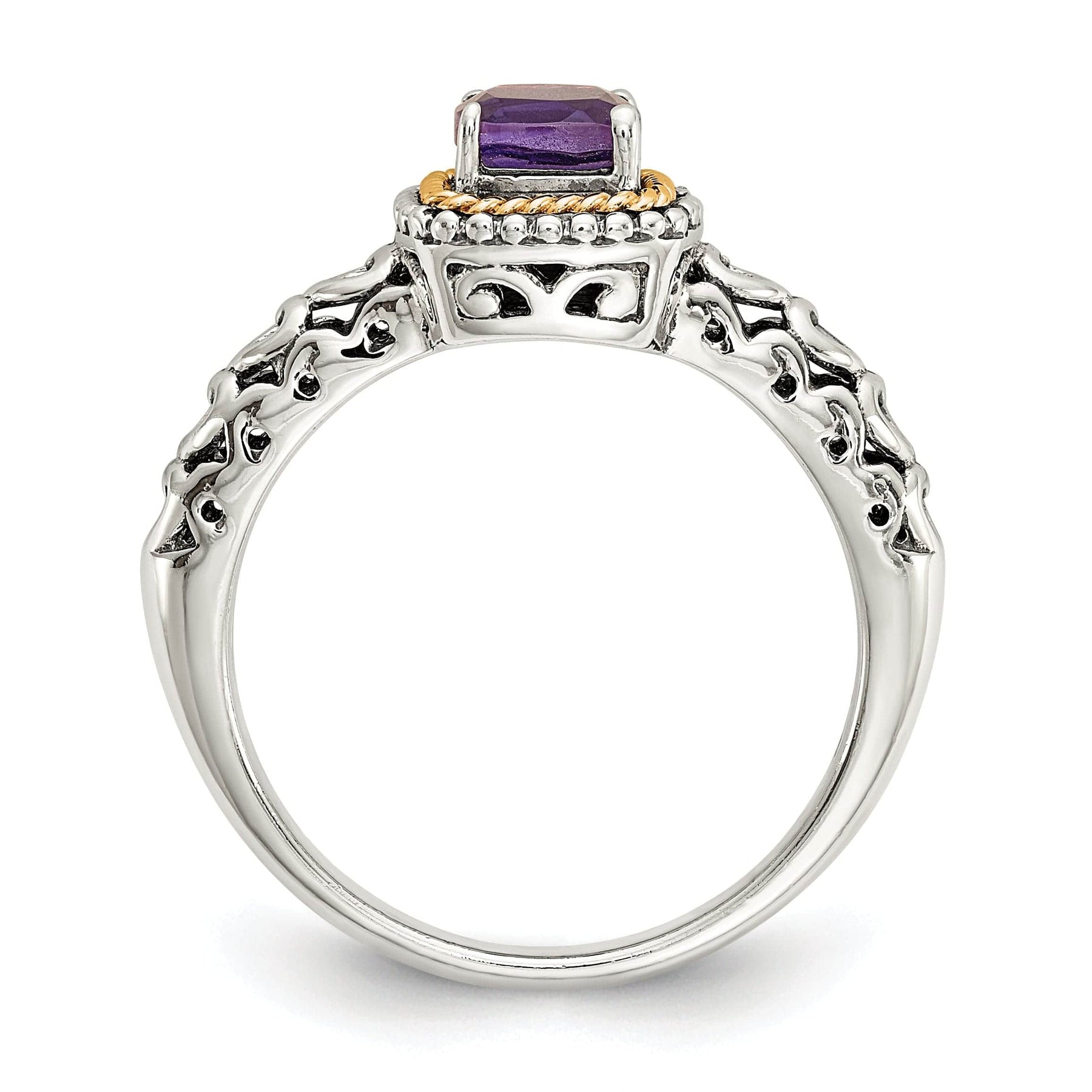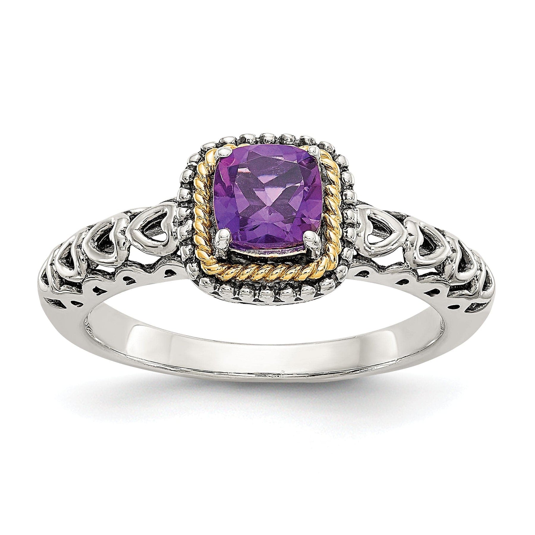 Enhance your jewelry collection with this stunning Sterling Silver and 14k Yellow Gold Amethyst Ring. Crafted with the finest materials, this ring boasts a unique combination of sterling silver and 14k yellow gold, creating a luxurious and timeless piece.
