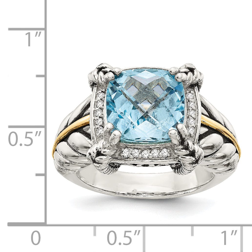 Sterling Silver Gold Blue Topaz Diamond Ring