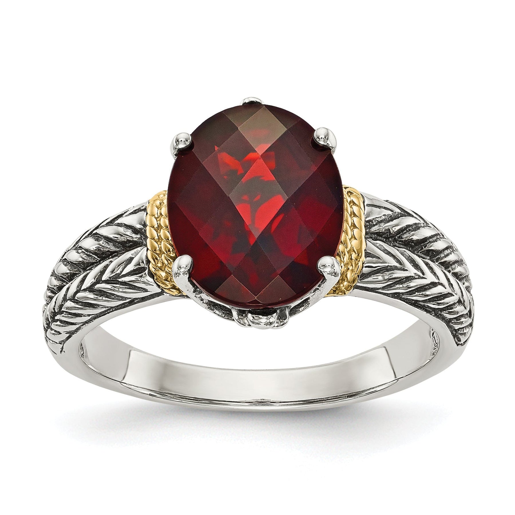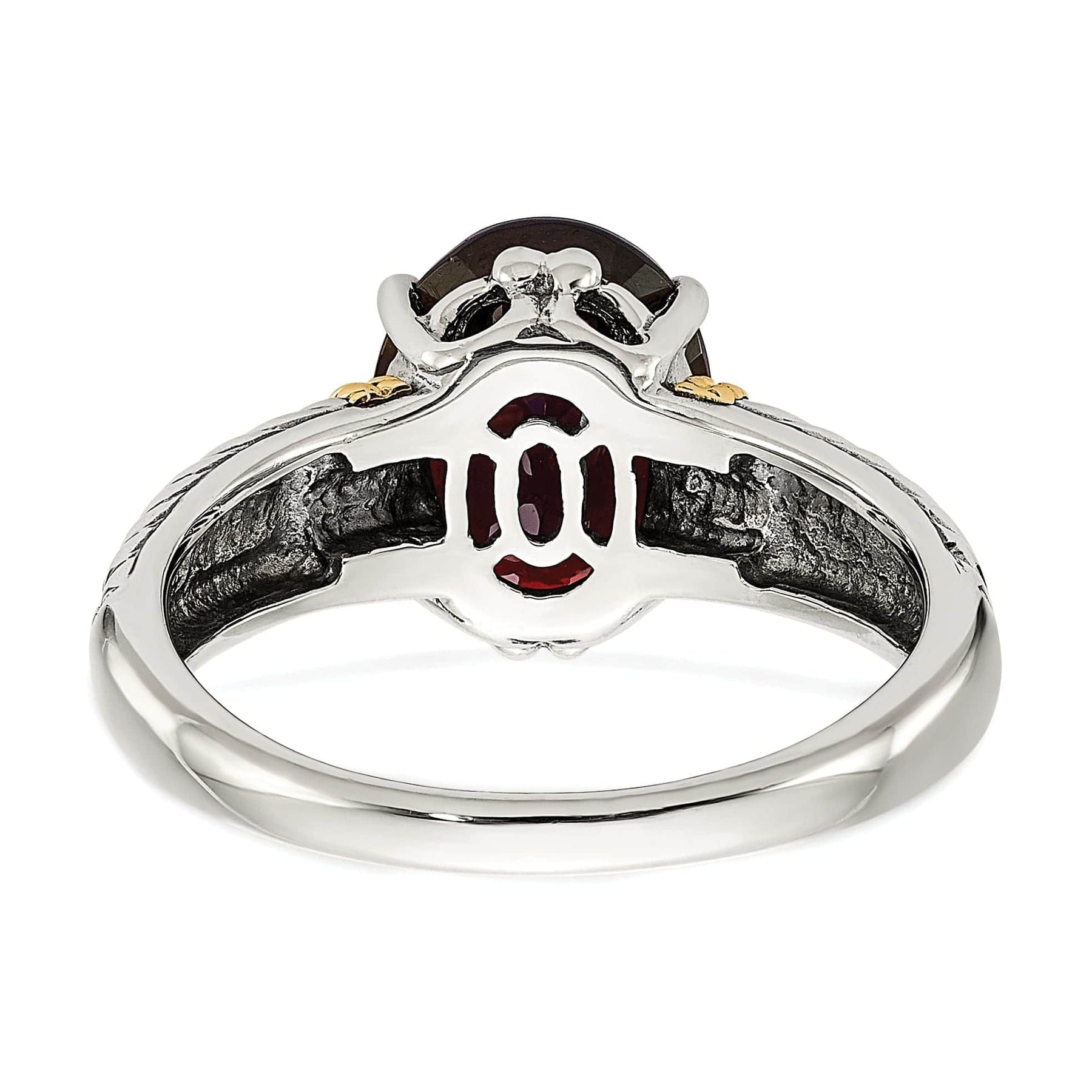 Introducing our stunning Sterling Silver Gold Garnet Ring. This exquisite ring features a beautiful garnet gemstone set in a luxurious combination of sterling silver and 14k yellow gold.