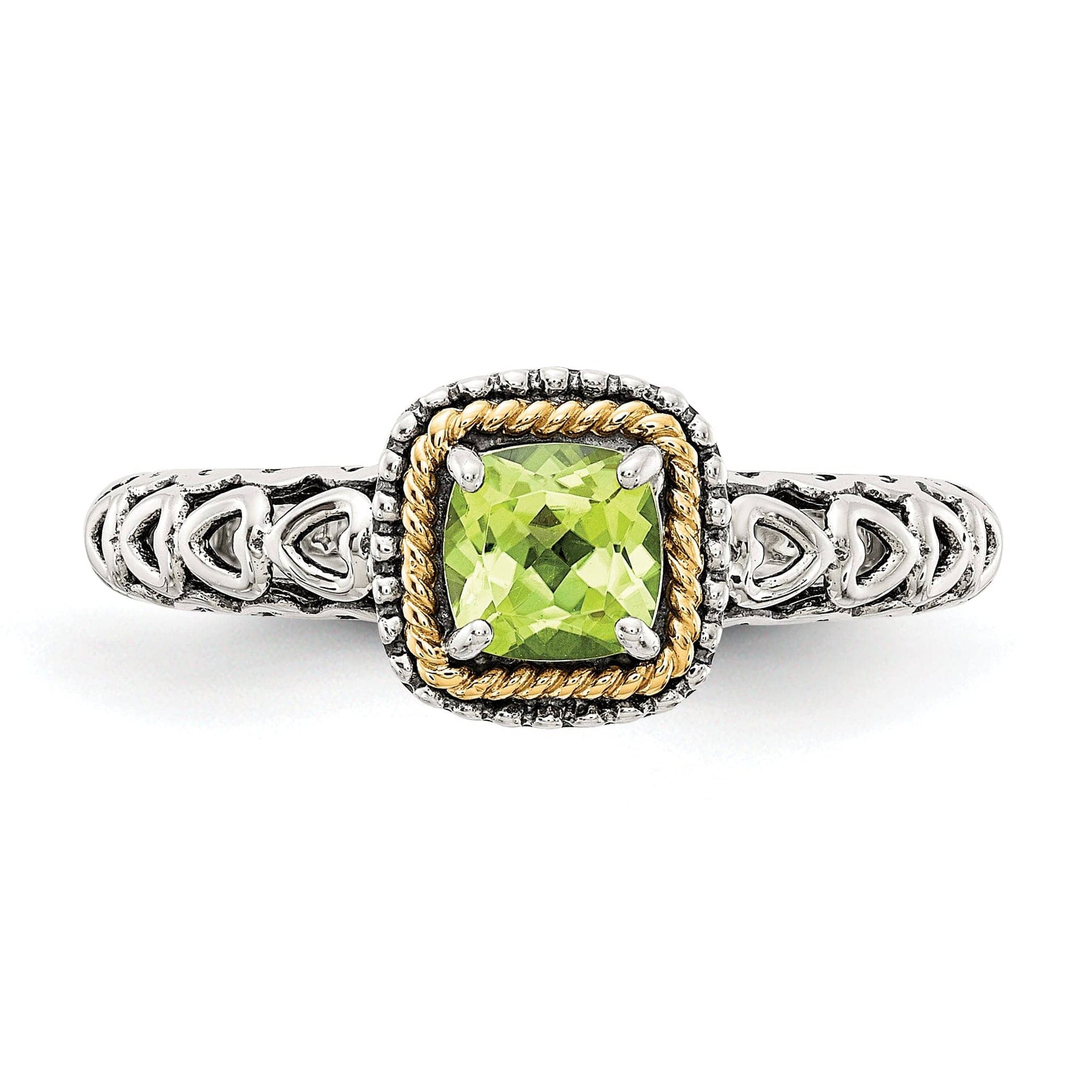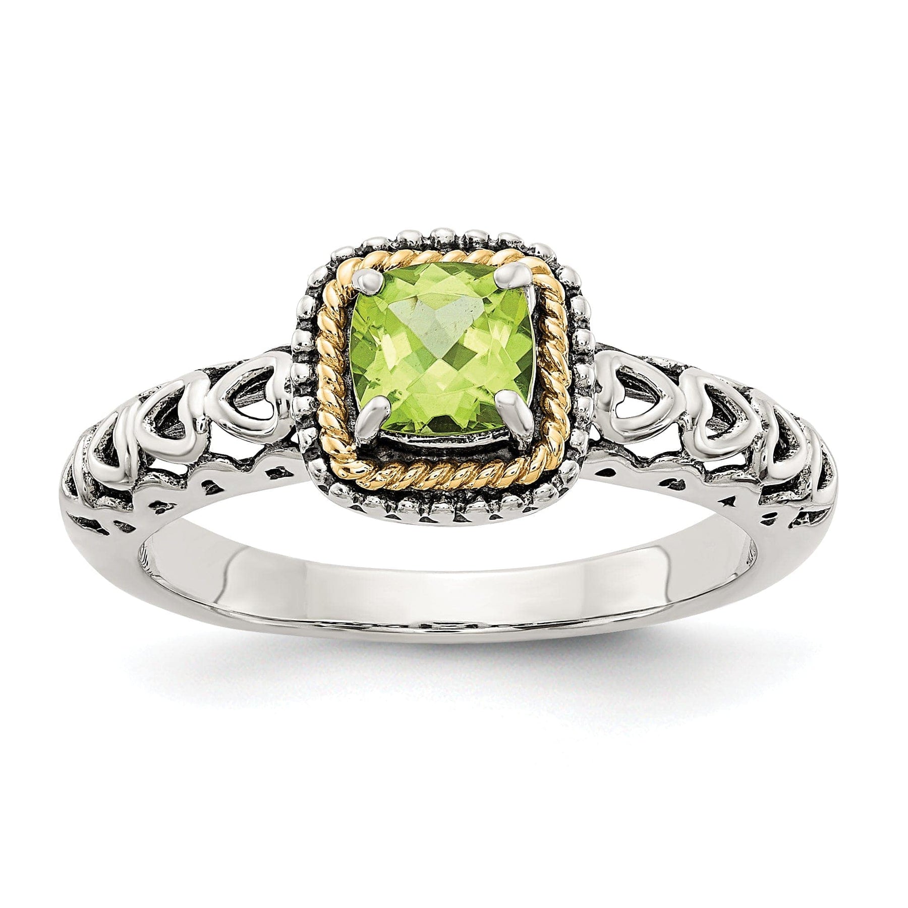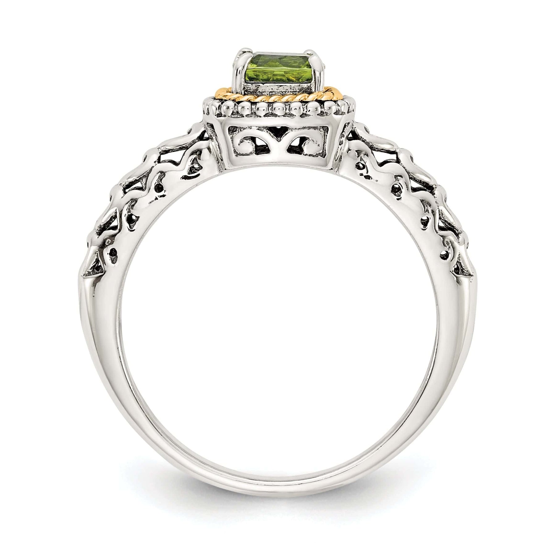 Introducing the stunning Sterling Silver Gold Peridot Ring, a true symbol of luxury and elegance. This exquisite ring features a vibrant peridot gemstone set in a combination of sterling silver and 14k yellow gold, creating a timeless and sophisticated look.