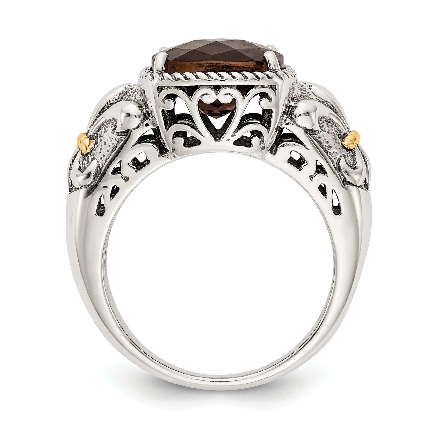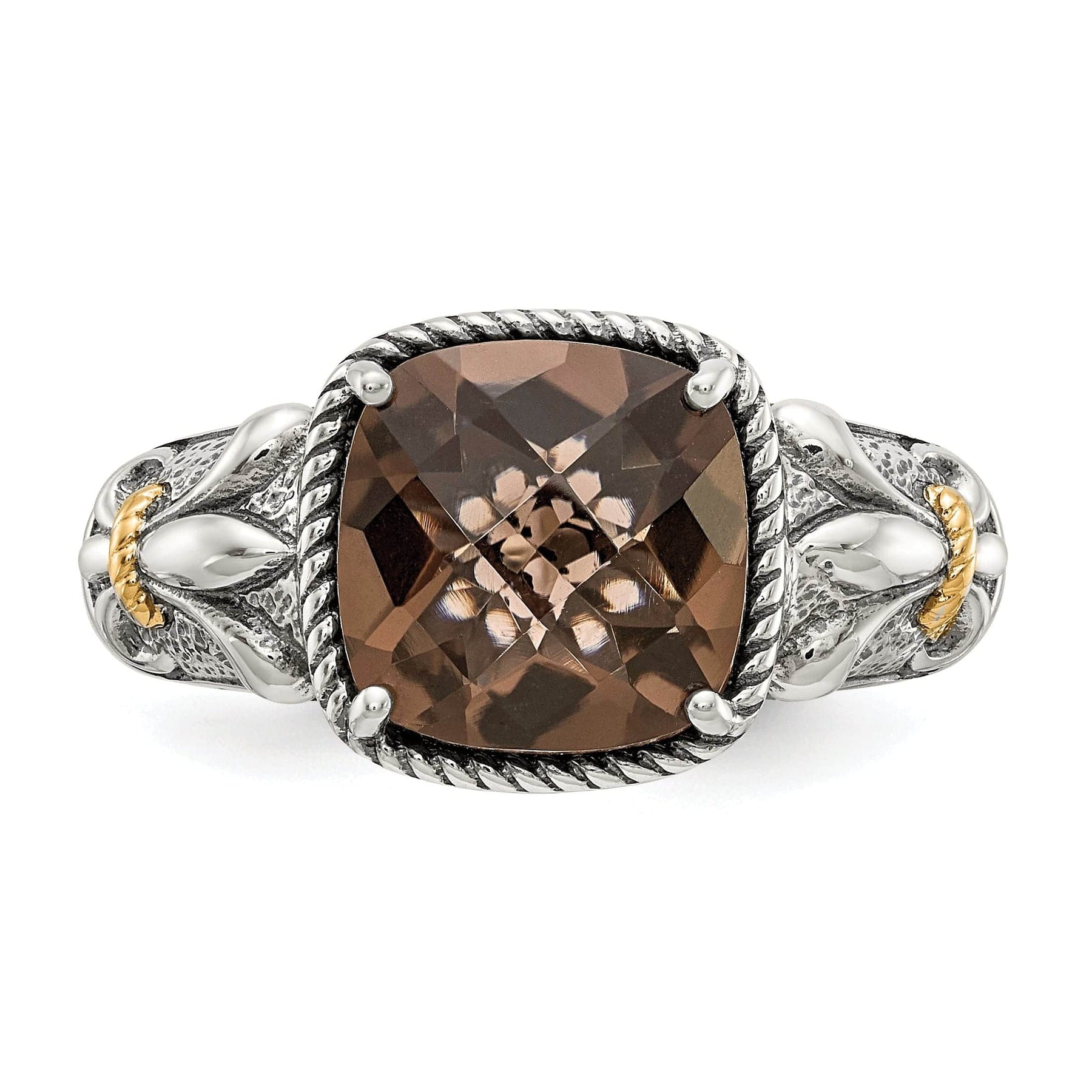 Elevate your jewelry collection with this stunning Sterling Silver and 14k Yellow Gold Smokey Quartz Ring. Crafted with precision and attention to detail, this exquisite piece features a mesmerizing smokey quartz gemstone that exudes a warm and earthy glow. The combination of sterling silver and 14k yellow gold creates a luxurious contrast that adds sophistication to any outfit.