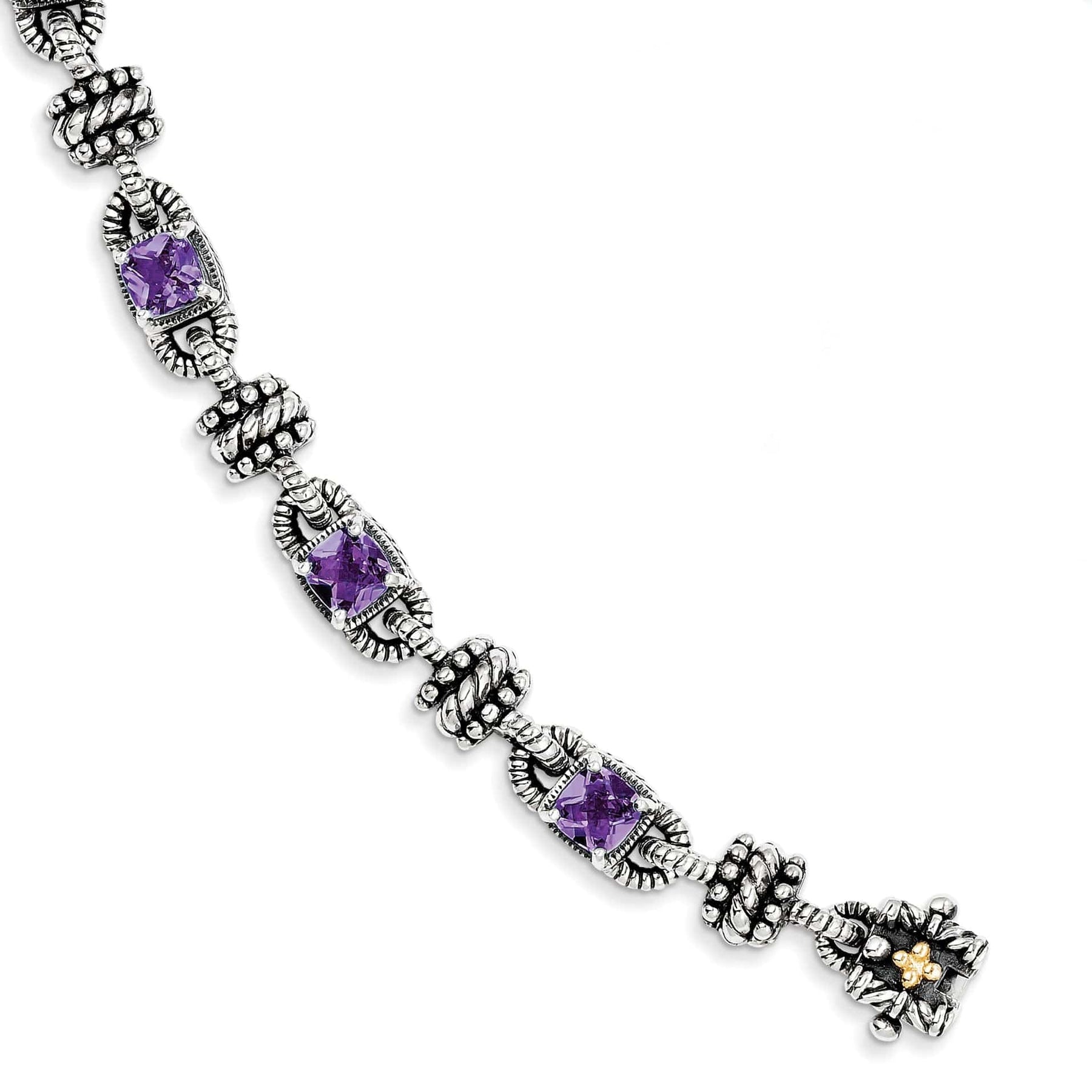 Sterling Silver Gold Amethyst Antiqued Bracelet