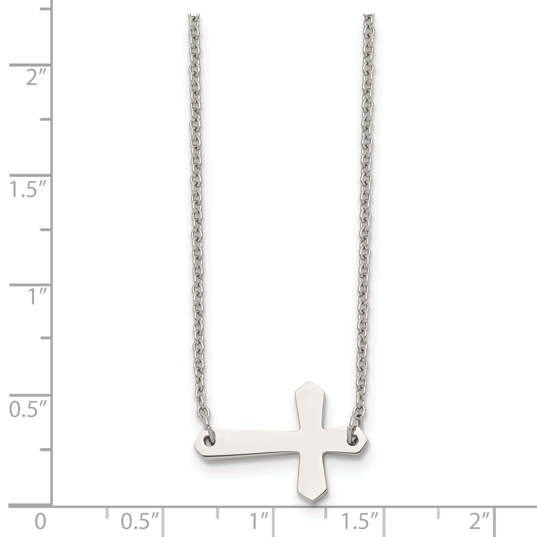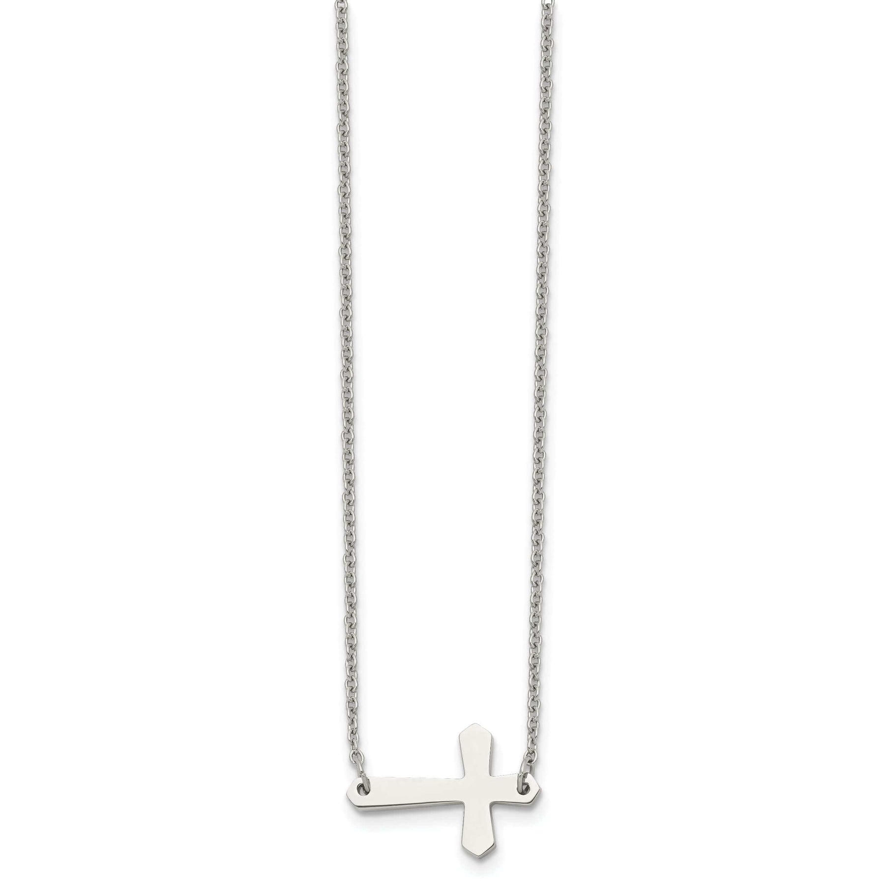 Whether you wear it on its own or layer it with other necklaces, this Stainless Steel Polished Sideways Cross Necklace will add a touch of faith and style to any ensemble. Perfect for everyday wear or a special occasion, this necklace is a versatile piece that belongs in every jewelry collection. Treat yourself or a loved one to this timeless piece today.