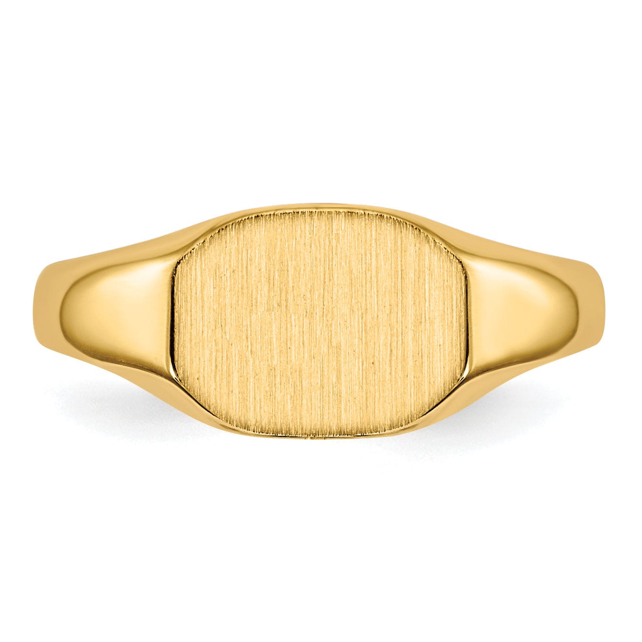 Give the gift of elegance and style with this 14k Yellow Gold Signet Children's Ring. Made with high-quality materials and expert craftsmanship, this ring is a beautiful and meaningful addition to any child's jewelry collection. Perfect for birthdays, holidays, or any special occasion, this ring is sure to be cherished for years to come. Make your child feel special with this stunning piece that they will love and appreciate for a lifetime.
