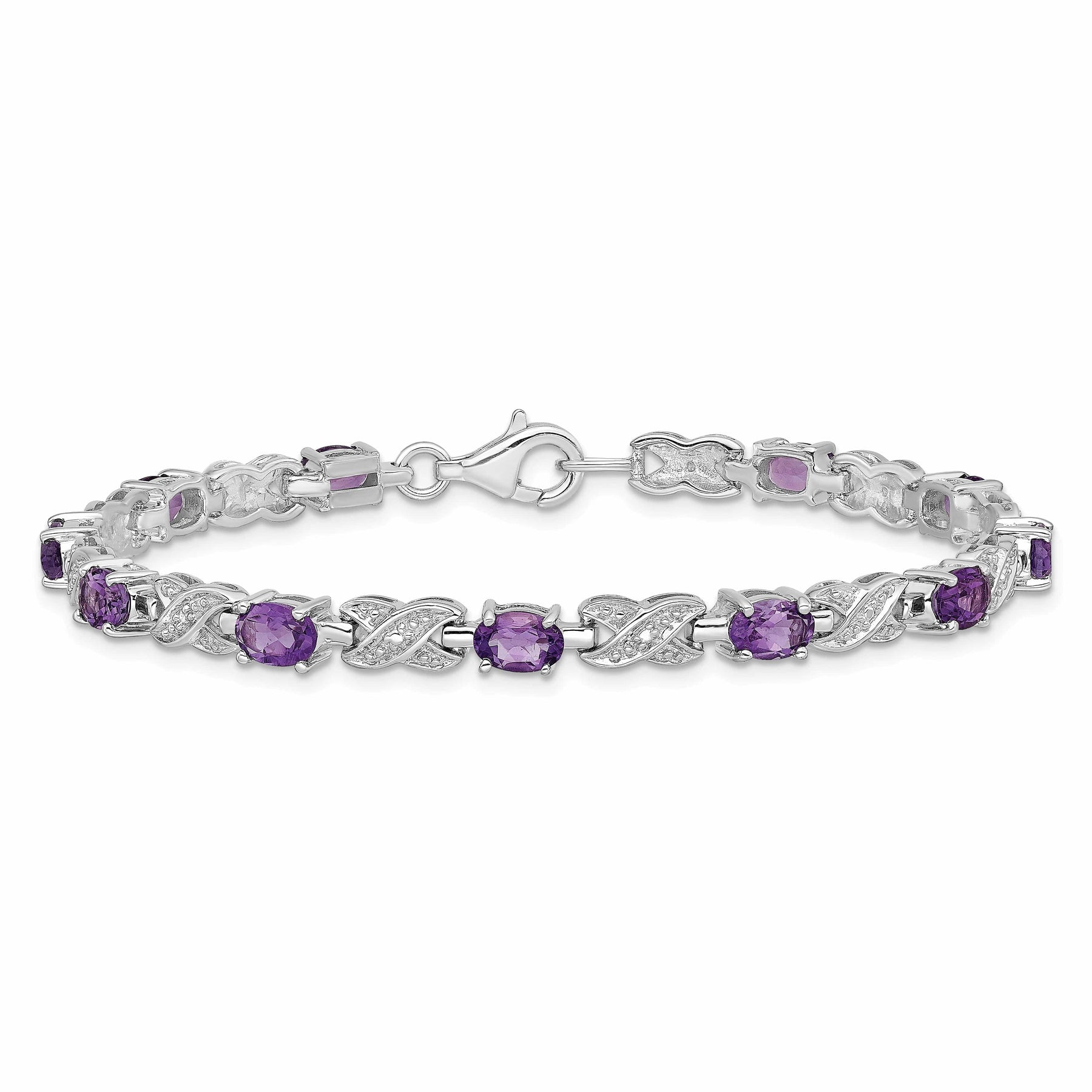 The centerpiece of this exquisite bracelet is the 6x4-mm oval cut genuine amethyst gemstone, totaling 4.5 carats in weight. Known for its deep purple hue and exceptional clarity, the amethyst gemstone is believed to promote peace, courage, and inner strength.