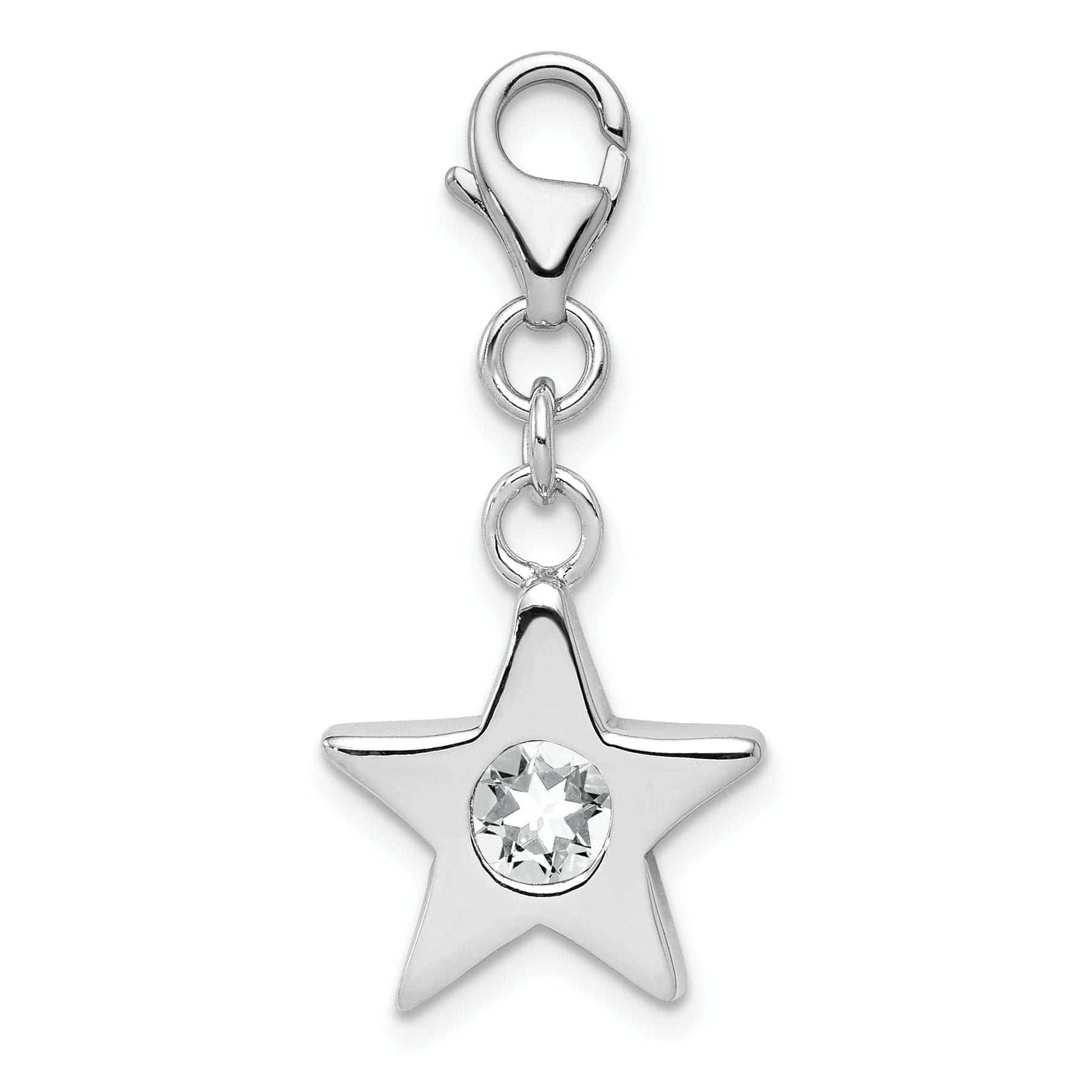 Introducing our stunning Sterling Silver April C.Z Birthstone Star Charm, a dazzling addition to any jewelry collection. Made of high-quality sterling silver with a polished finish, this charm is sure to catch the light and shine brightly.