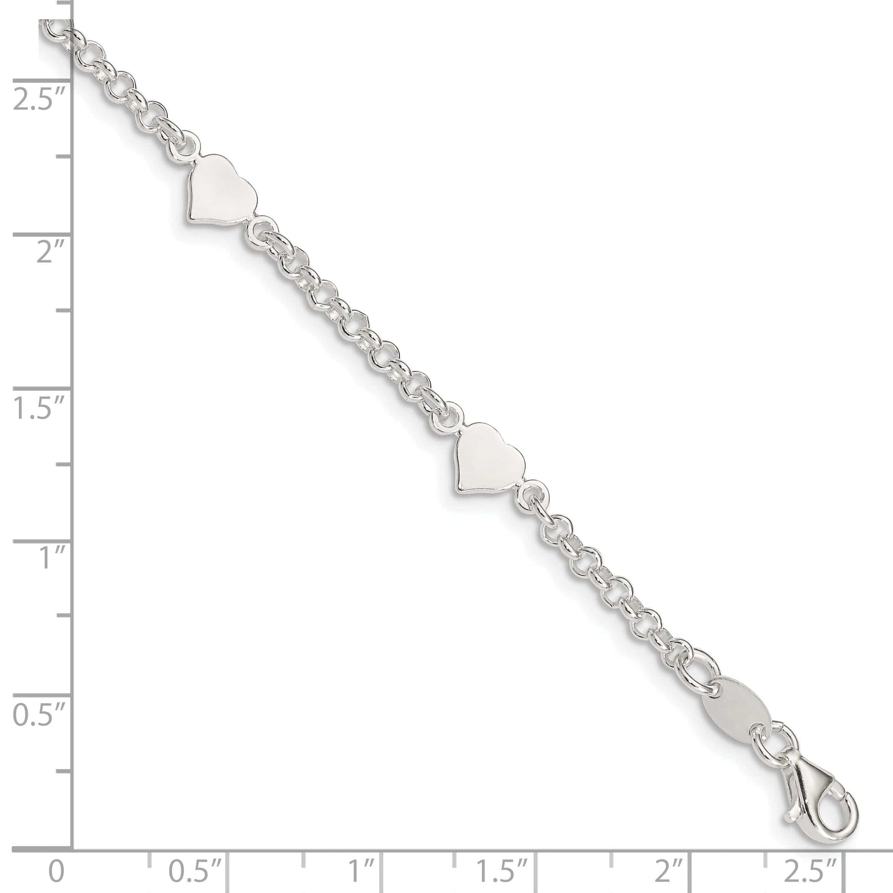 Crafted from high-quality sterling silver, this bracelet features sweet heart charms with a polished finish that catches the light and sparkles beautifully. The bracelet measures a perfect length for children, and also includes a .25-inch extender for a comfortable and adjustable fit.