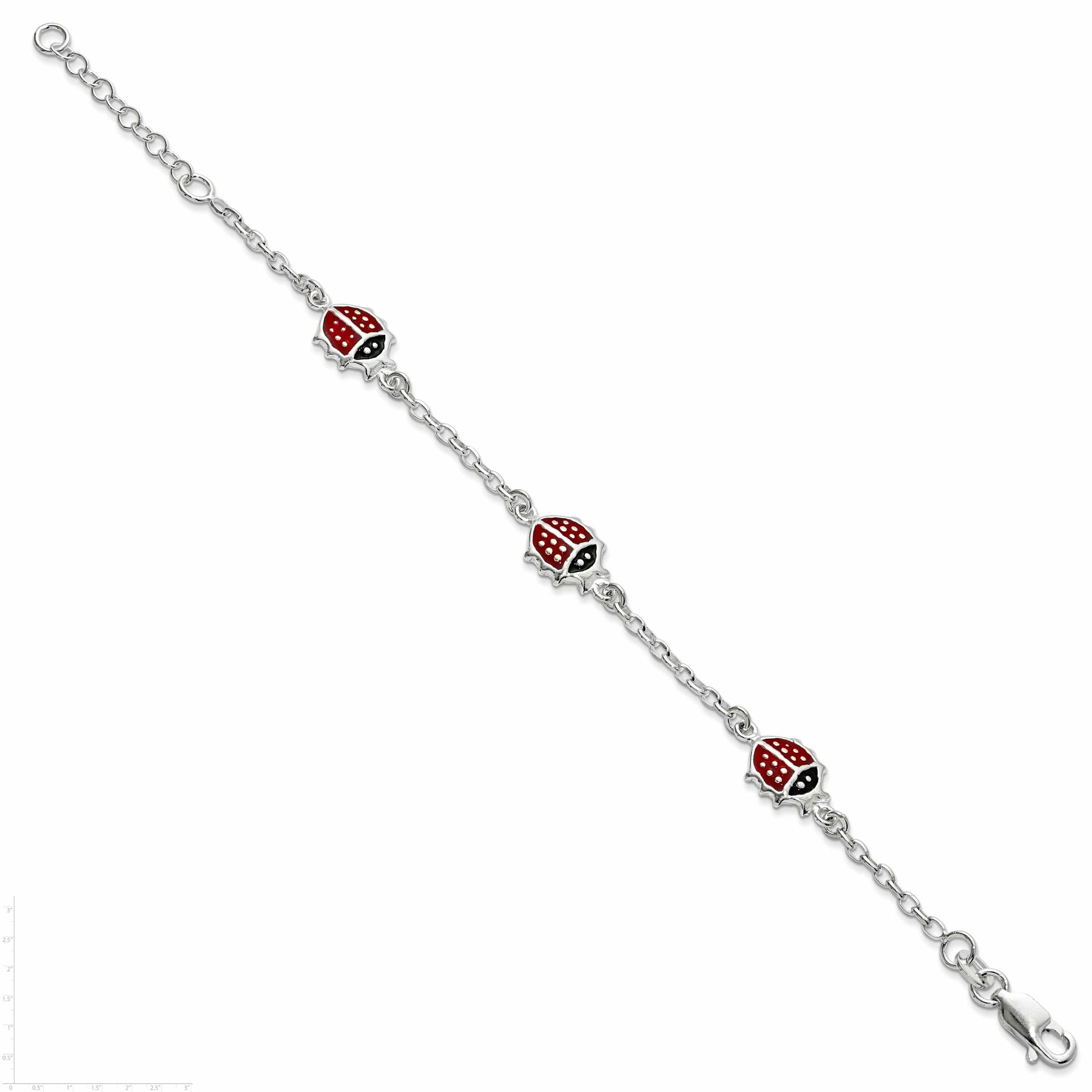 Introducing our adorable Sterling Silver Red Enamel Ladybugs Childs Bracelet with a fancy lobster clasp. This charming bracelet is perfect for your little one who loves all things nature and insects. The bracelet features beautifully crafted ladybug charms that are accented with vibrant red enamel to create a stunning pop of color.