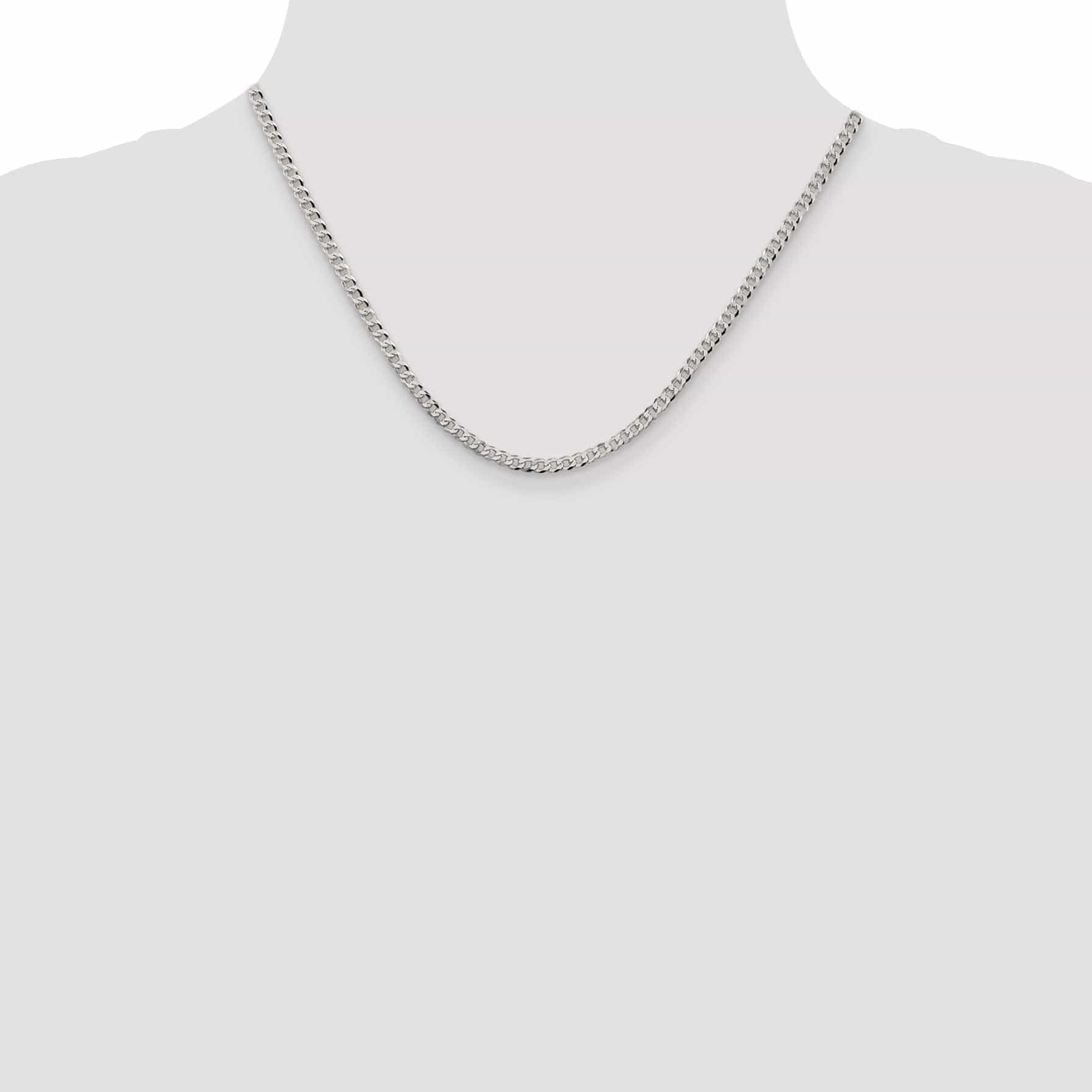 Finished with a secure lobster clasp, this chain is easy to put on and take off, ensuring that your jewelry stays in place all day long. Whether you're dressing up for a special occasion or adding a touch of sophistication to your everyday look, this Sterling Silver Polished Finish 3.20-mm Solid Beveled Link Curb Chain is the perfect choice. Upgrade your style with this timeless and versatile chain today.