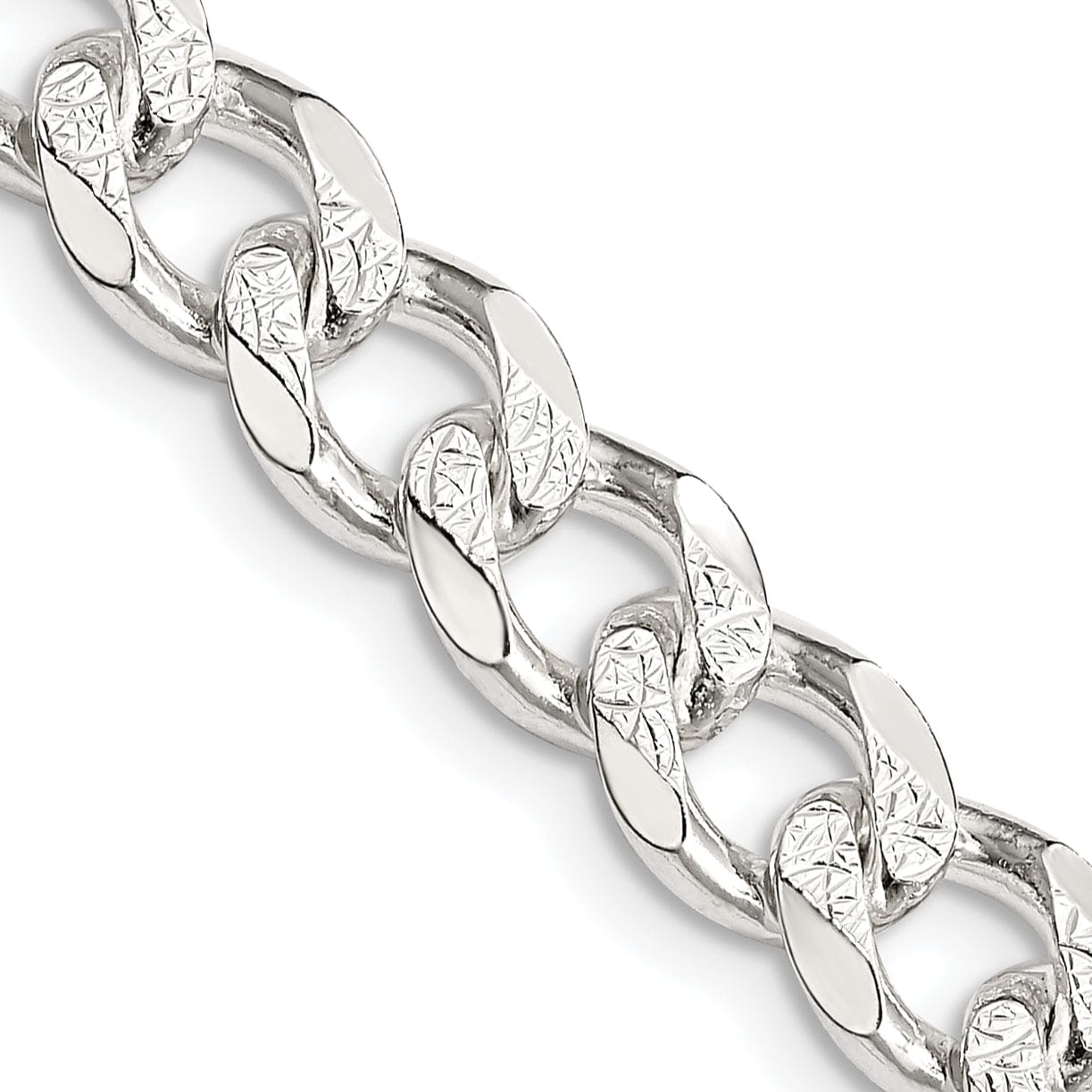 Elevate your style with our stunning Sterling Silver Polished Finish 8.00-mm Solid Pave Link Curb Chain. This timeless piece features a bold 8.00-mm width and a luxurious polished finish that will catch the light at every angle. The solid pave links add a touch of elegance and sophistication to this classic curb chain.