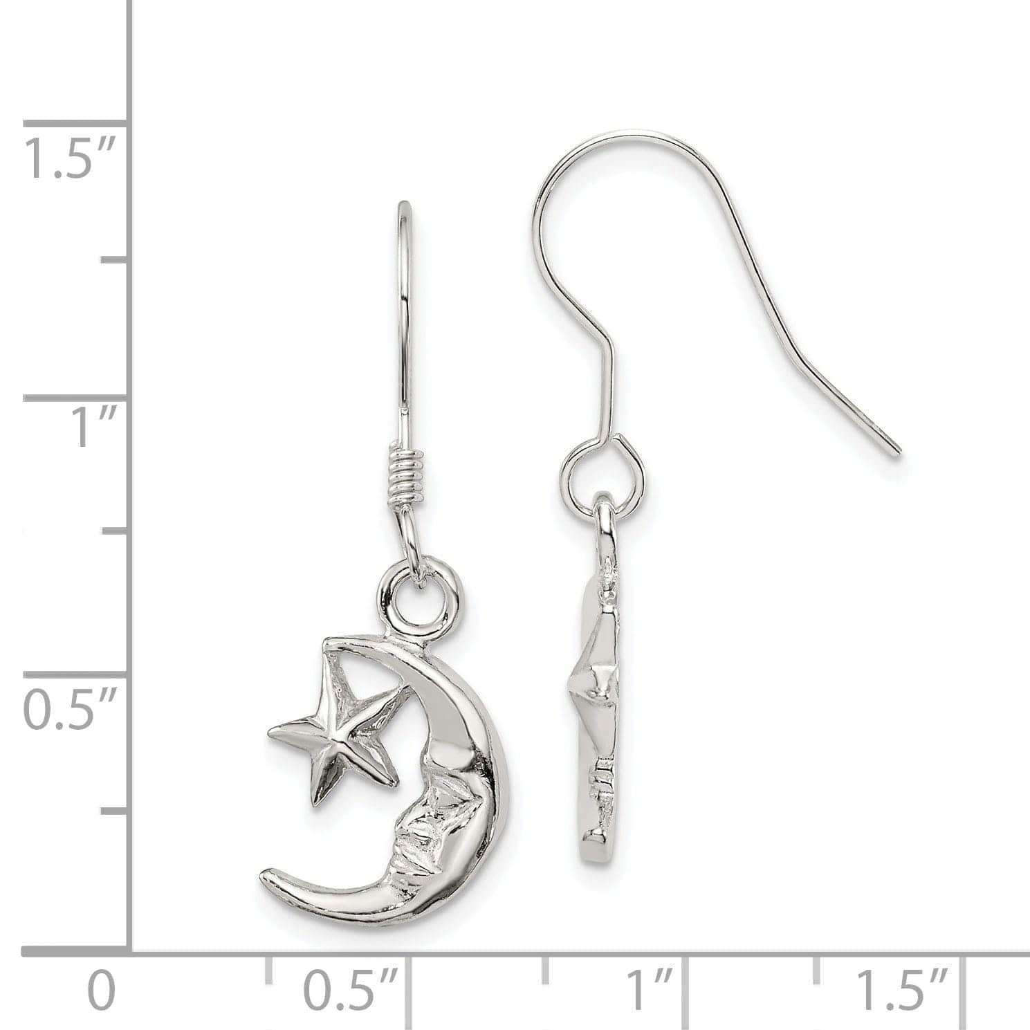 Silver Moon Star Dangle Hook Earrings