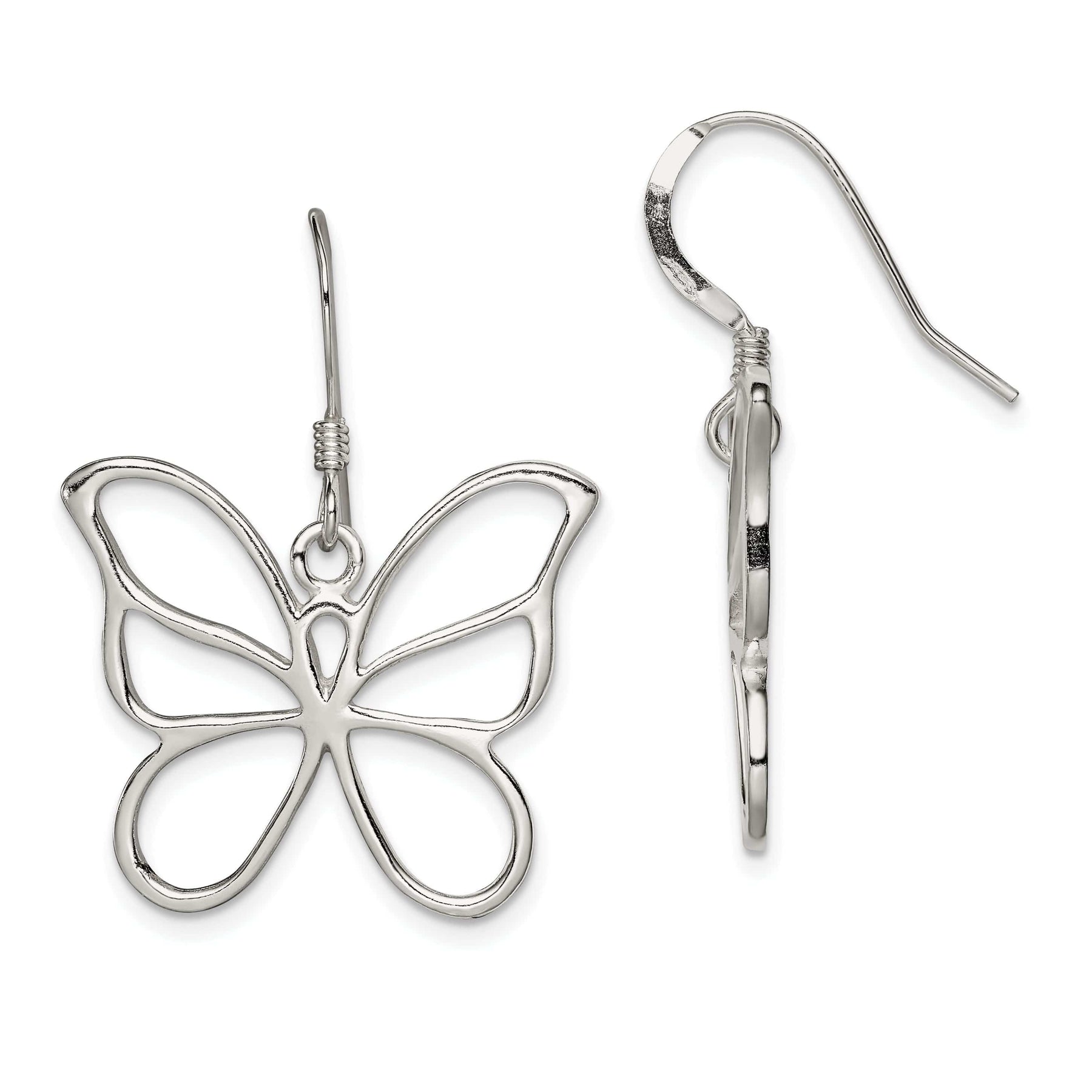Add a touch of whimsy and elegance to your jewelry collection with our stunning Sterling Silver Large Butterfly Dangle Earrings. Crafted from high-quality sterling silver, these earrings feature intricately detailed butterfly designs that are sure to capture attention and admiration.