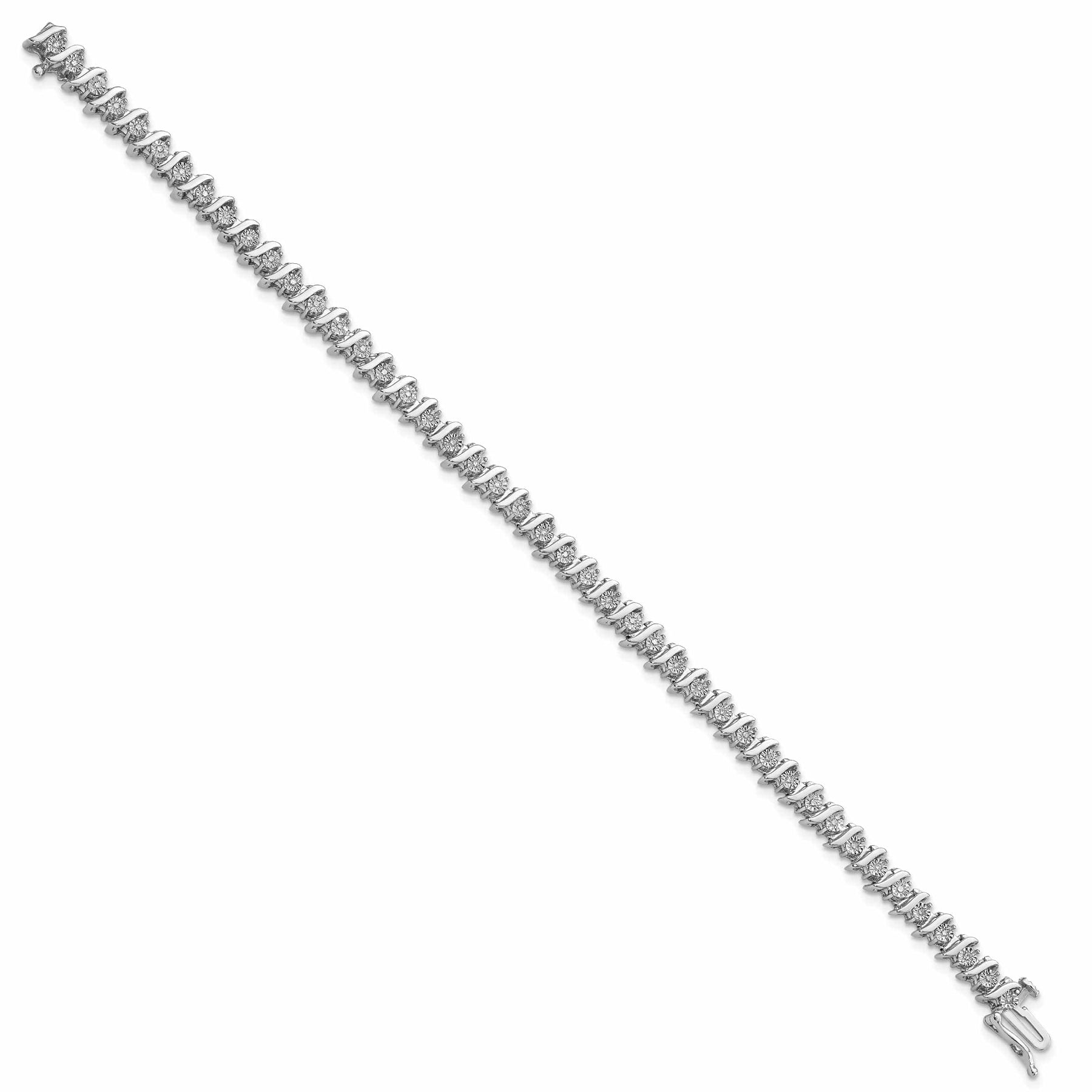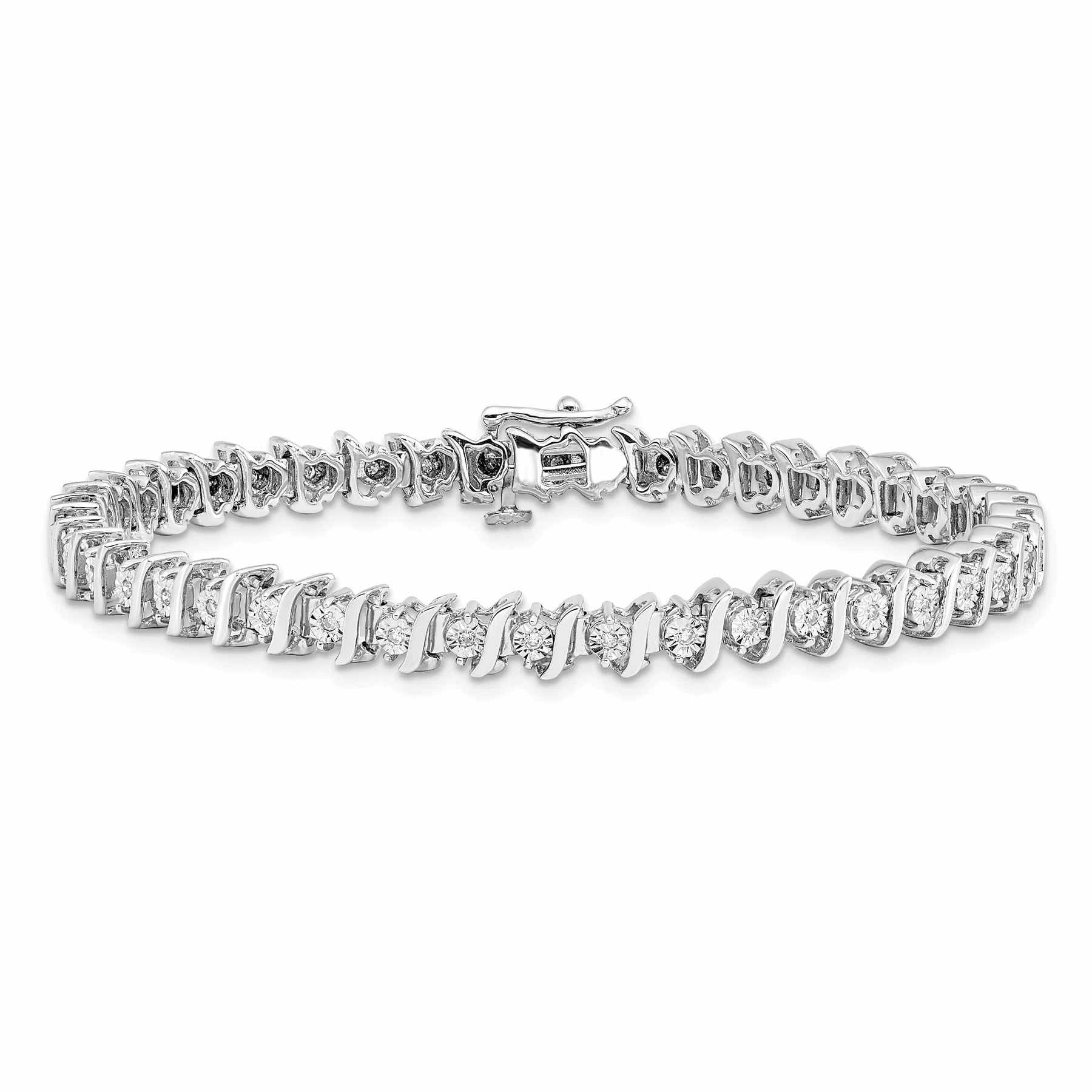 Upgrade your jewelry collection with this exquisite Sterling Silver Polished Rhodium Plated Diamond Fancy Bracelet. Crafted with precision and care, this stunning bracelet features a polished finish that shines brilliantly under any lighting. The bracelet is adorned with high-quality diamonds that boast an i2 clarity and I-J color rating, adding a touch of elegance and sophistication to any outfit.