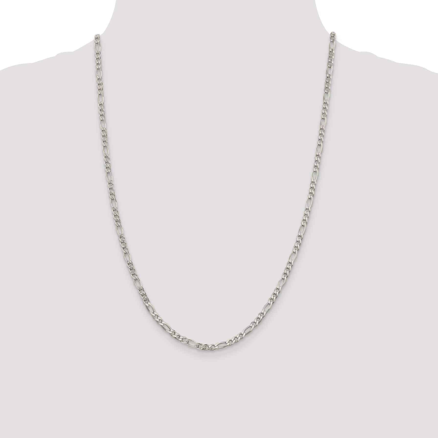 Silver 4.00-mm Solid Pave Flat Figaro Chain