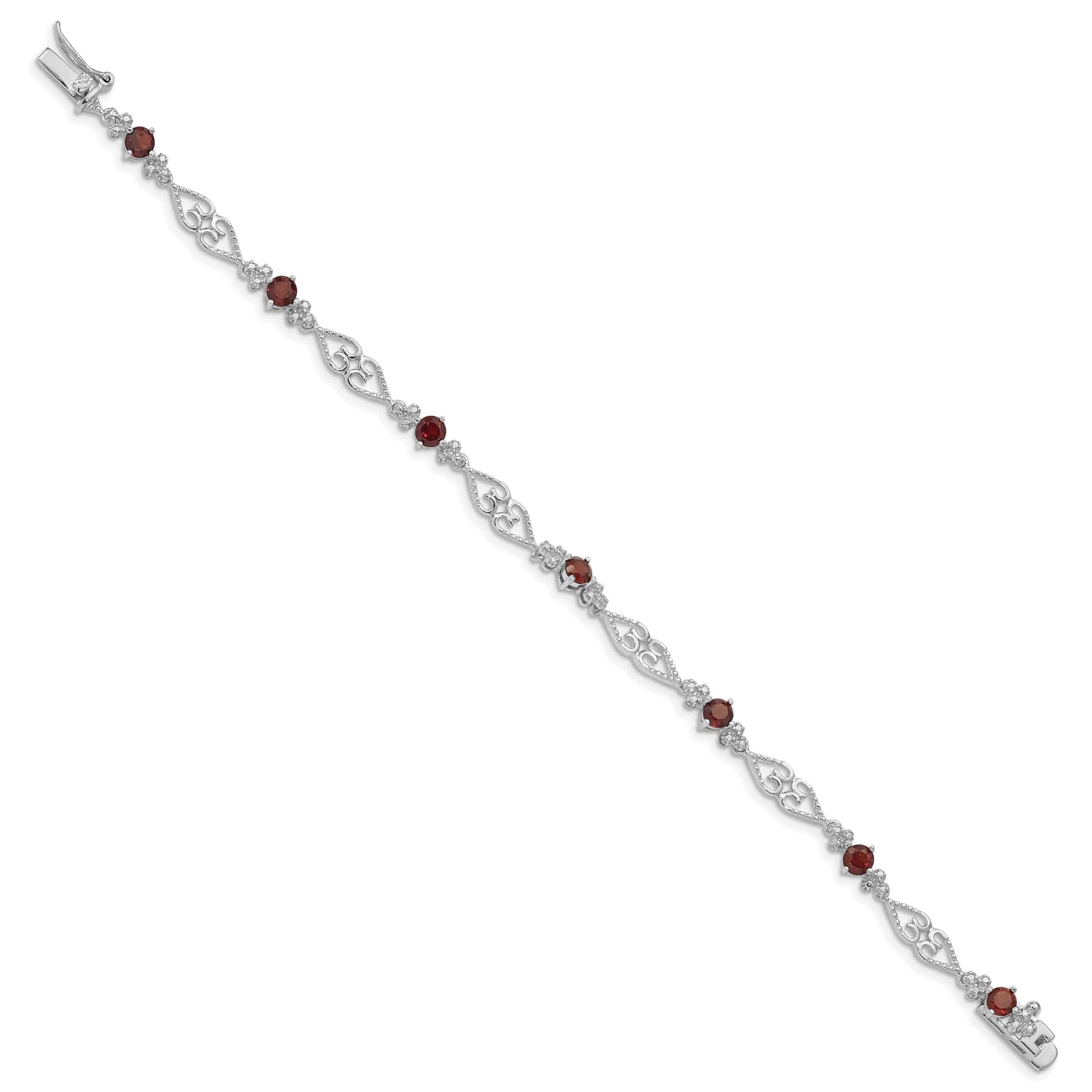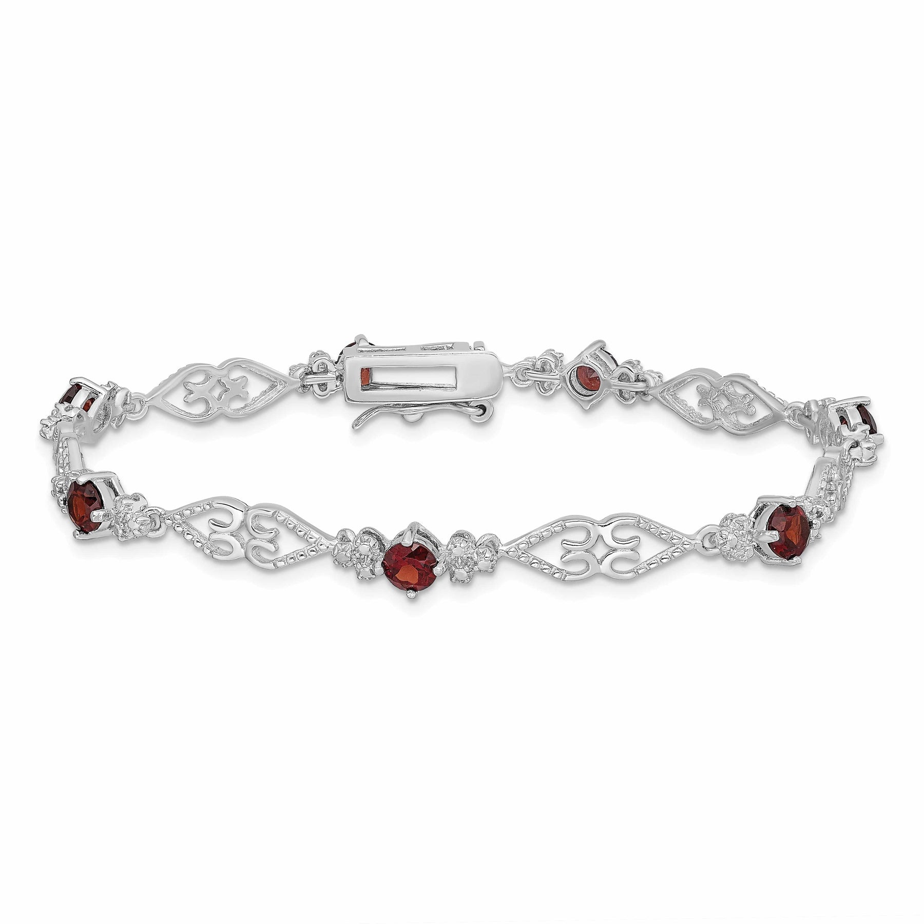 Introducing our exquisite Silver Garnet Gemstone Diamond Bracelet, a stunning piece that will add a touch of elegance and sophistication to any outfit. Crafted from high-quality sterling silver with a polished rhodium-plated finish, this bracelet features a beautiful open back design that allows the 1.75 carat garnet gemstone to shine brilliantly.