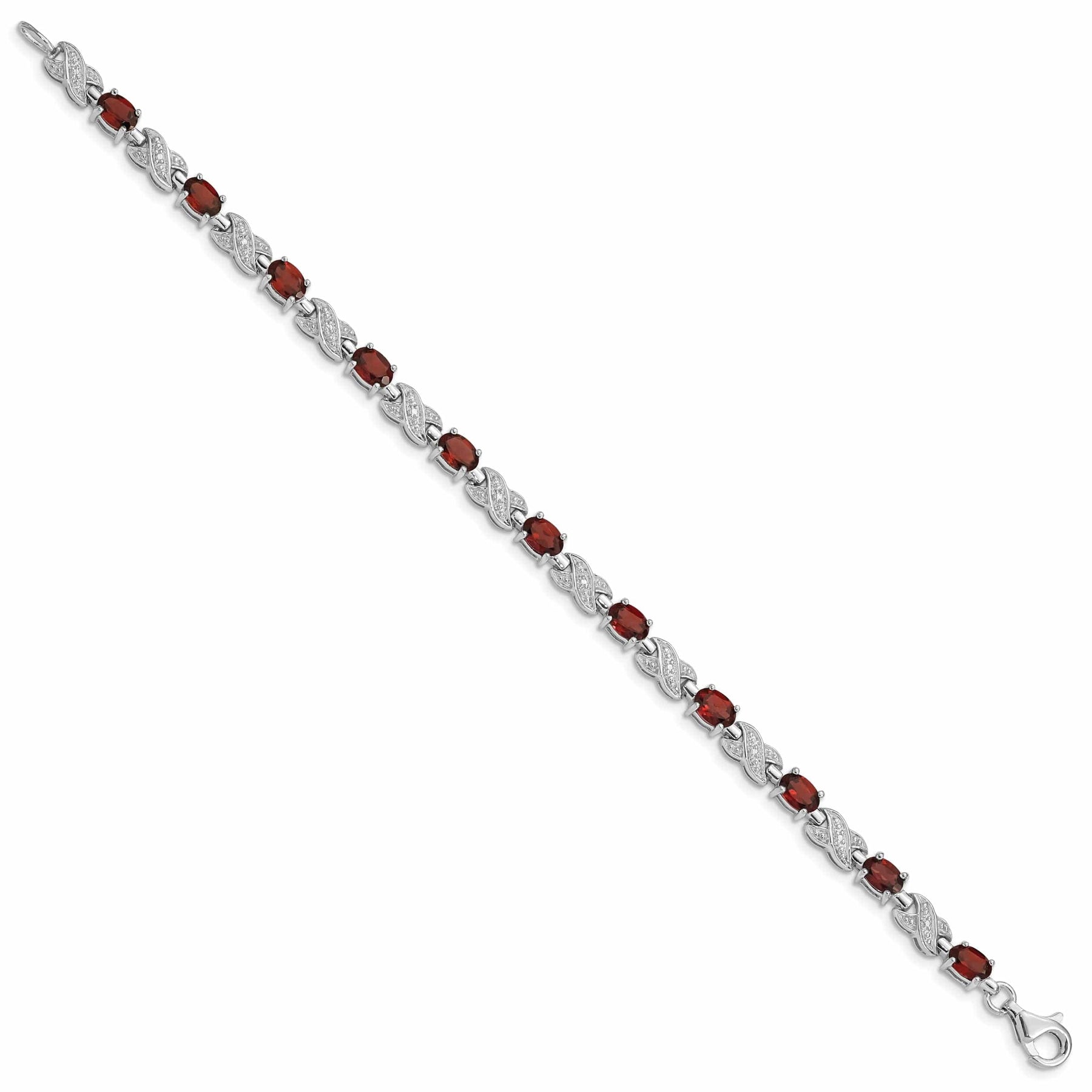Add a pop of color and a touch of elegance to your ensemble with our Sterling Silver Polished Finish Rhodium Plated Oval Cut Garnet Gemstone Bracelet. Perfect for gifting or treating yourself, this bracelet is a timeless piece that will be cherished for years to come.