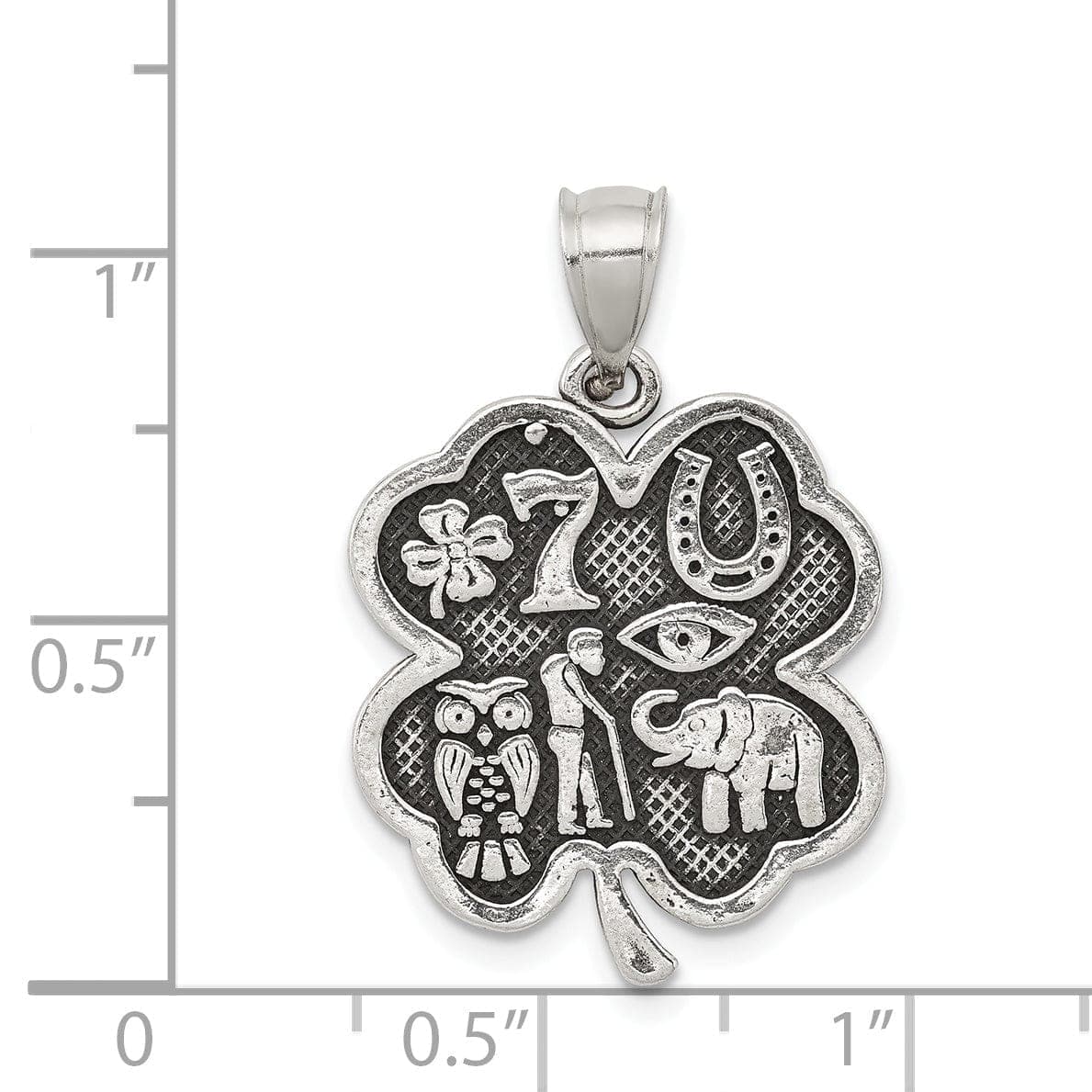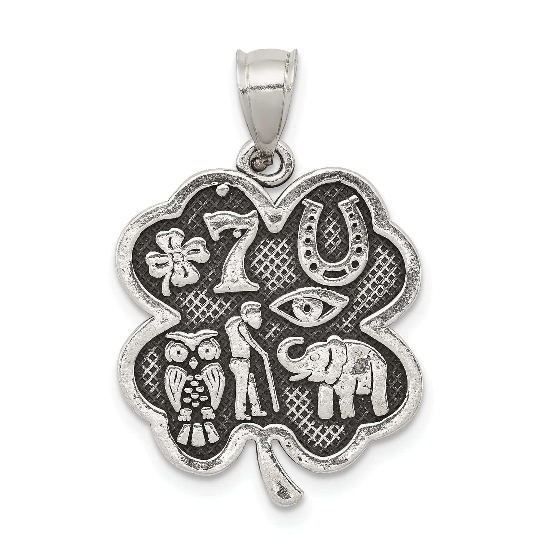 Introducing our stunning Silver Polished Good Luck Icon Clover Charm Pendant, handcrafted from solid sterling silver with a polished antiqued finish. This intricately designed charm features a patterned flat back and textured surface, adding a touch of uniqueness to its overall appearance.