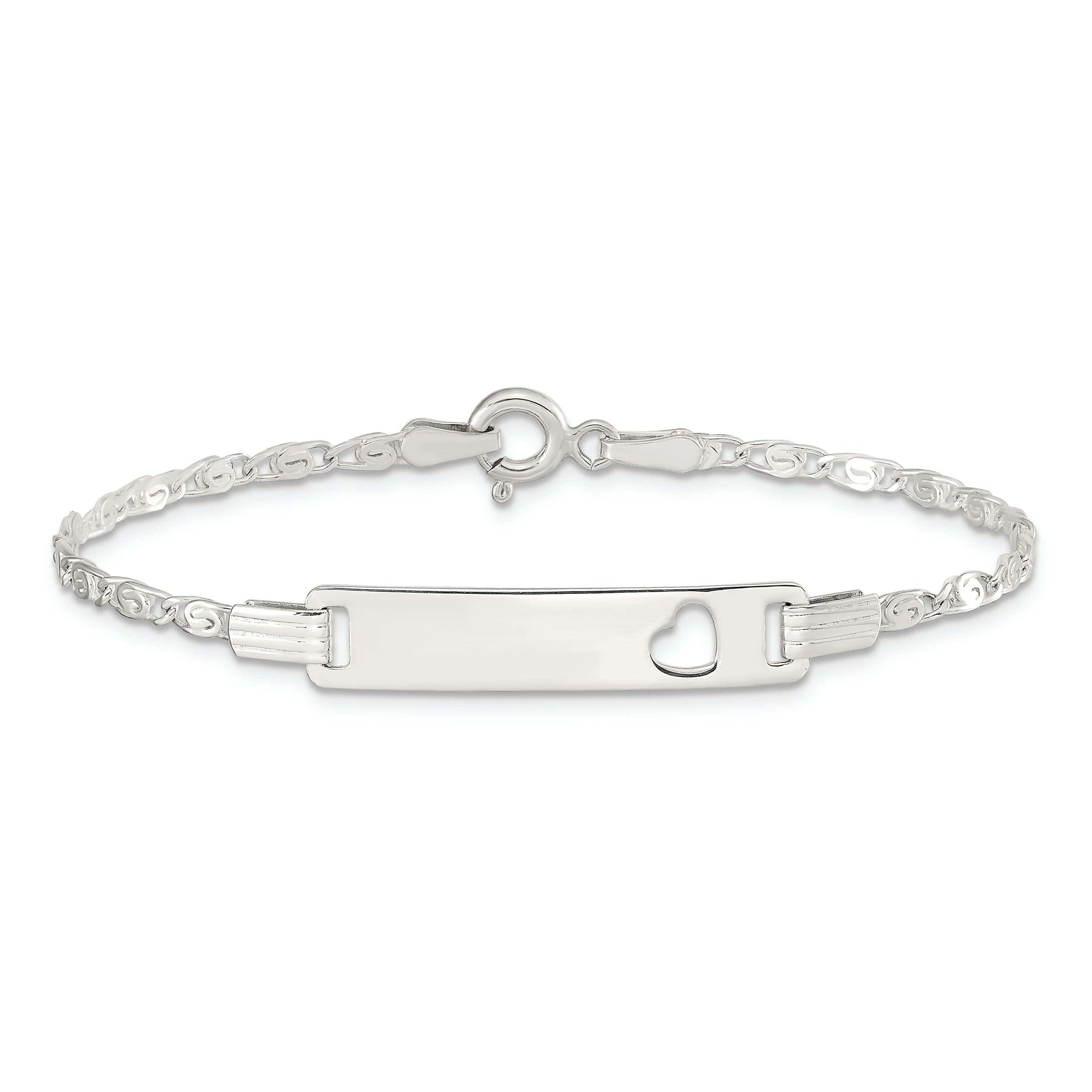 Whether you're looking for a baby shower gift, a christening present, or just want to add a special touch to your baby's wardrobe, our Silver Engravable Baby ID Cutout Heart Bracelet is the perfect choice. With its timeless design and customizable feature, it is sure to become a treasured keepsake that will be passed down through generations. Order yours today and celebrate the precious moments in your baby's life with style and sentimentality.