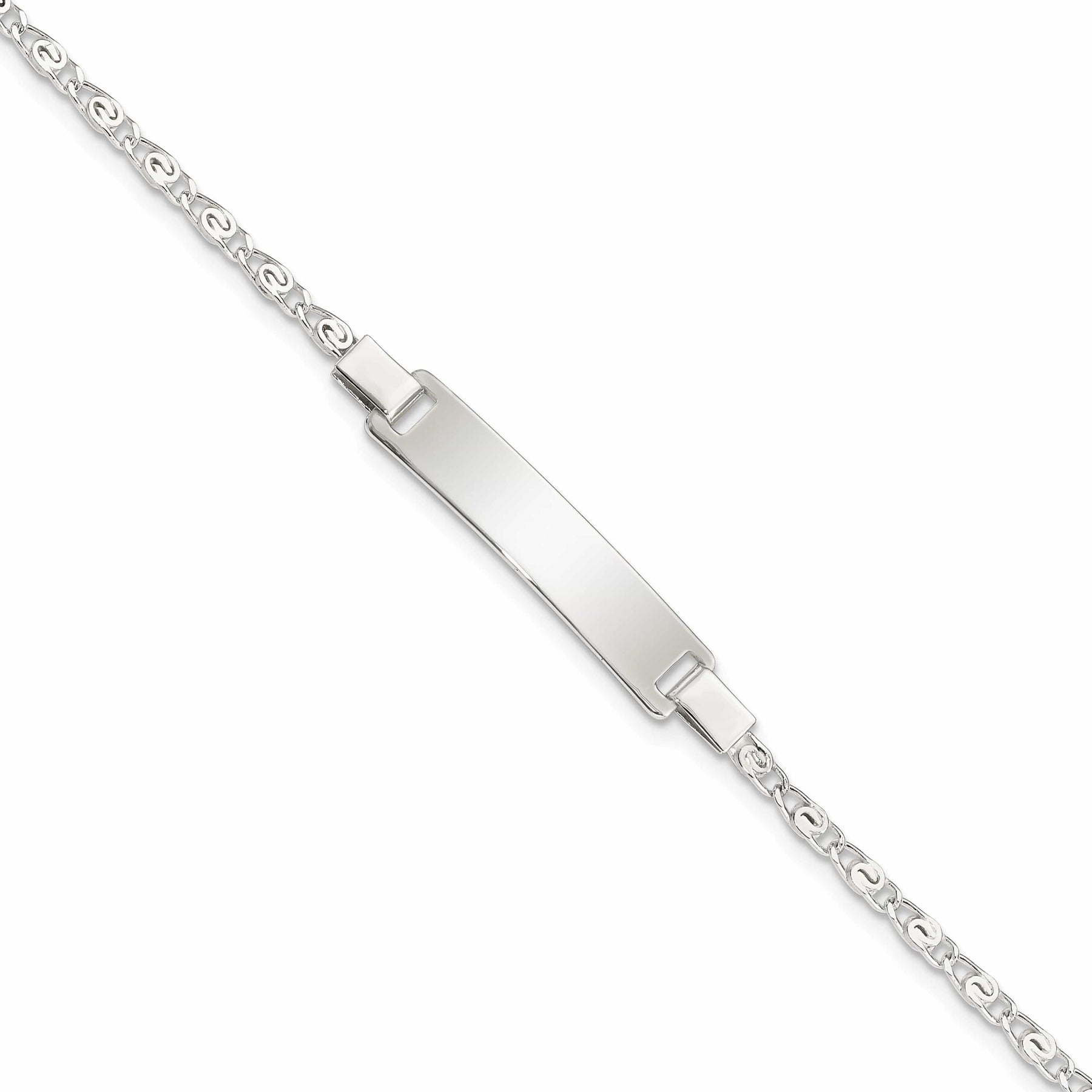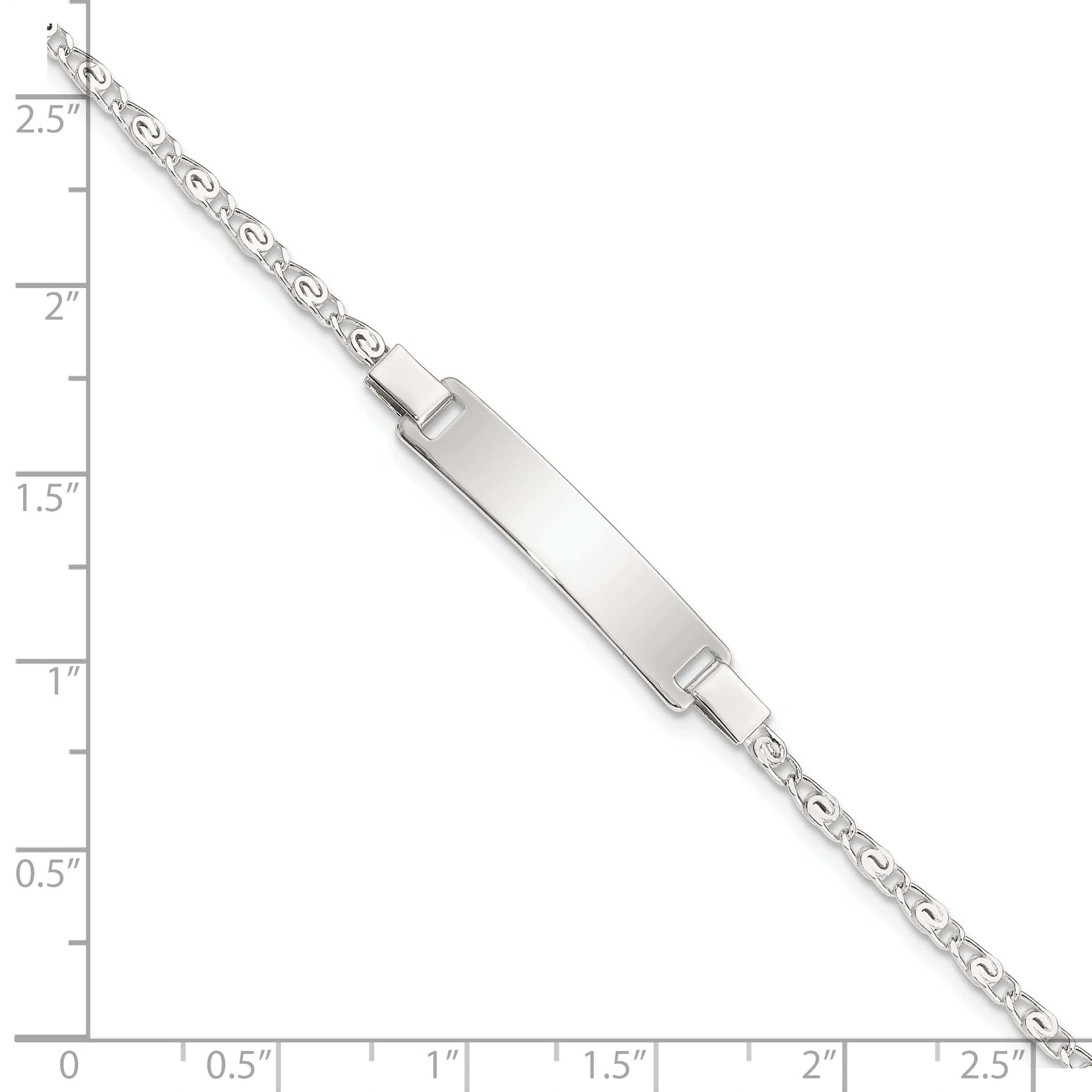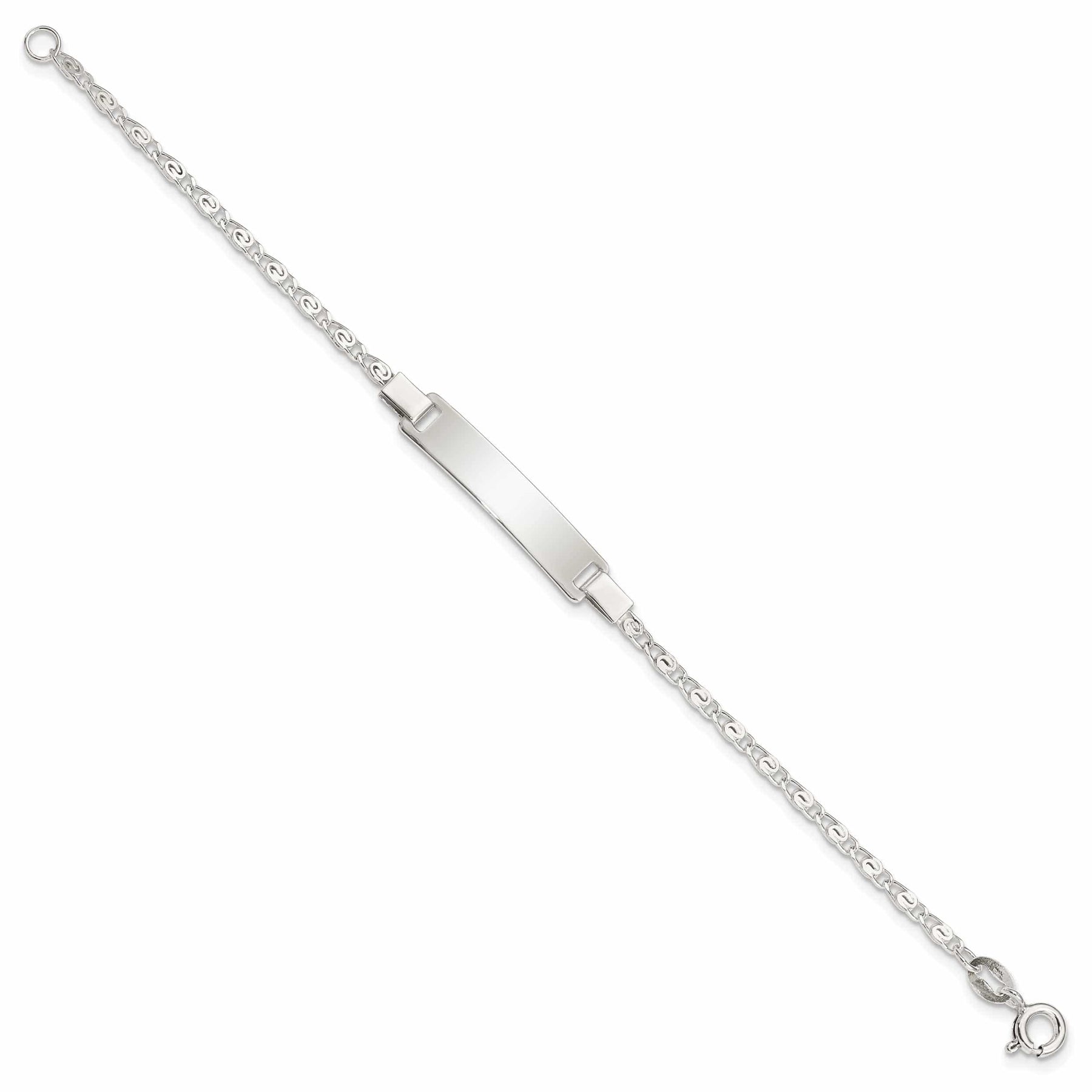 Crafted from high-quality sterling silver, this bracelet features a sleek and polished finish that adds a touch of elegance to any outfit. The classic ID plate design allows for custom engraving, making it a personalized and meaningful accessory for your little one.
