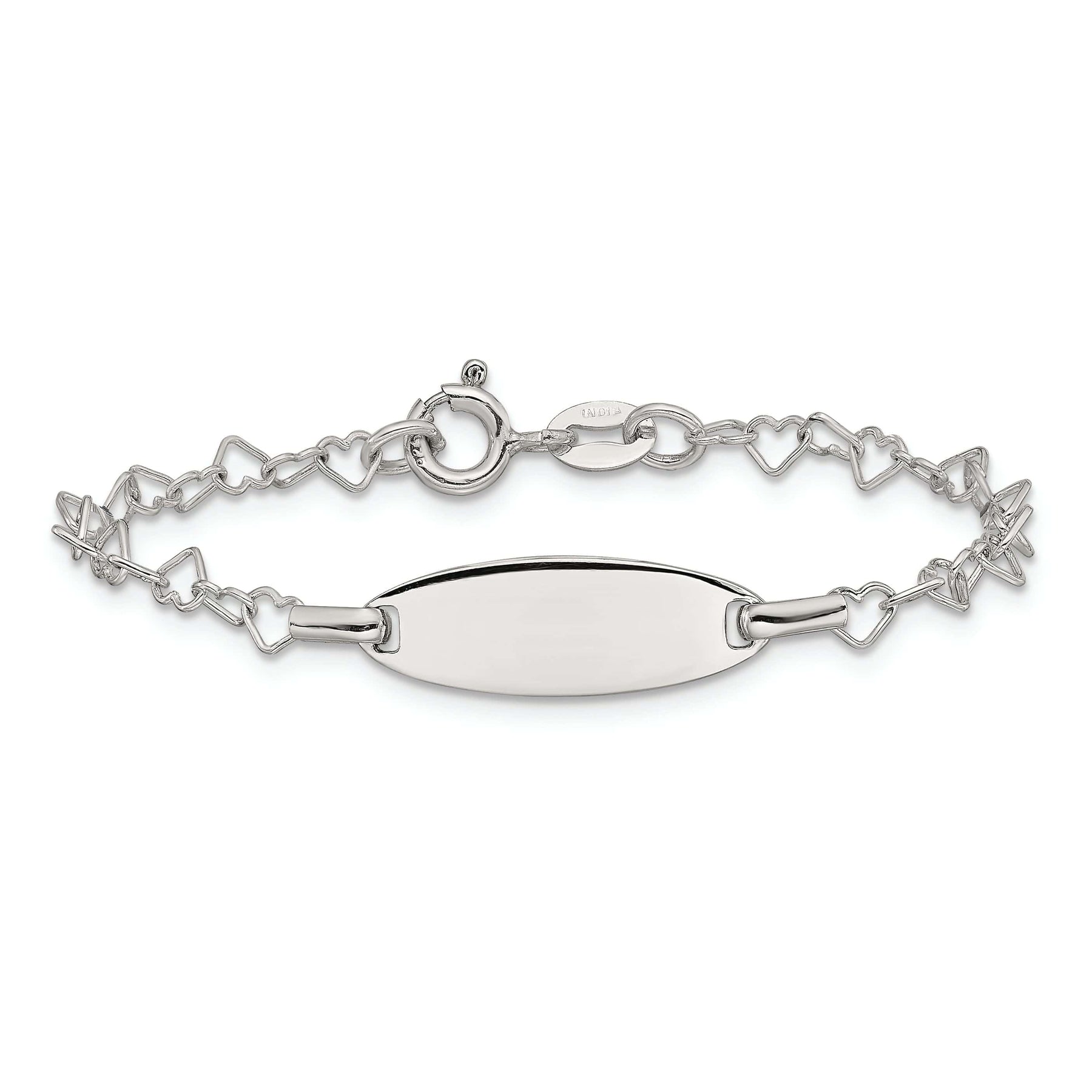 With its timeless design and durable construction, our Sterling Silver Children ID Heart Link Bracelet is the perfect accessory for any young fashionista. Add a touch of love and style to your little one's wardrobe with this stunning bracelet that is sure to make a statement wherever they go. Order yours today and make a lasting impression with this beautiful piece of jewelry.