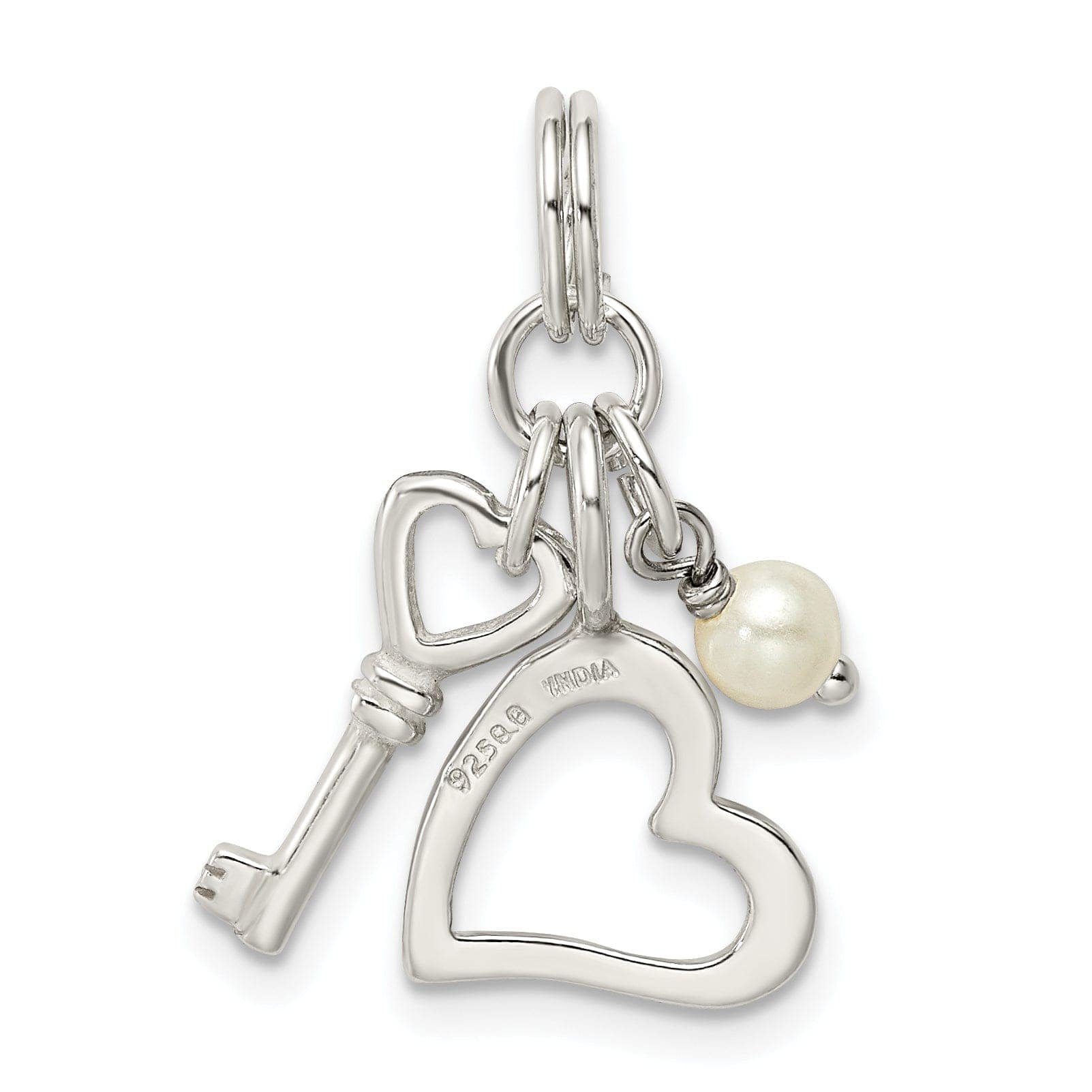 Whether you're treating yourself or looking for the perfect gift for someone special, this Sterling Silver Key and Heart with Synthetic Pearl Charm Pendant is sure to be a cherished addition to any jewelry collection. Wear it on its own for a delicate touch of sparkle, or pair it with other pieces for a more dramatic look. Add this charming pendant to your jewelry box today and enjoy the beauty and sophistication it brings to every outfit.