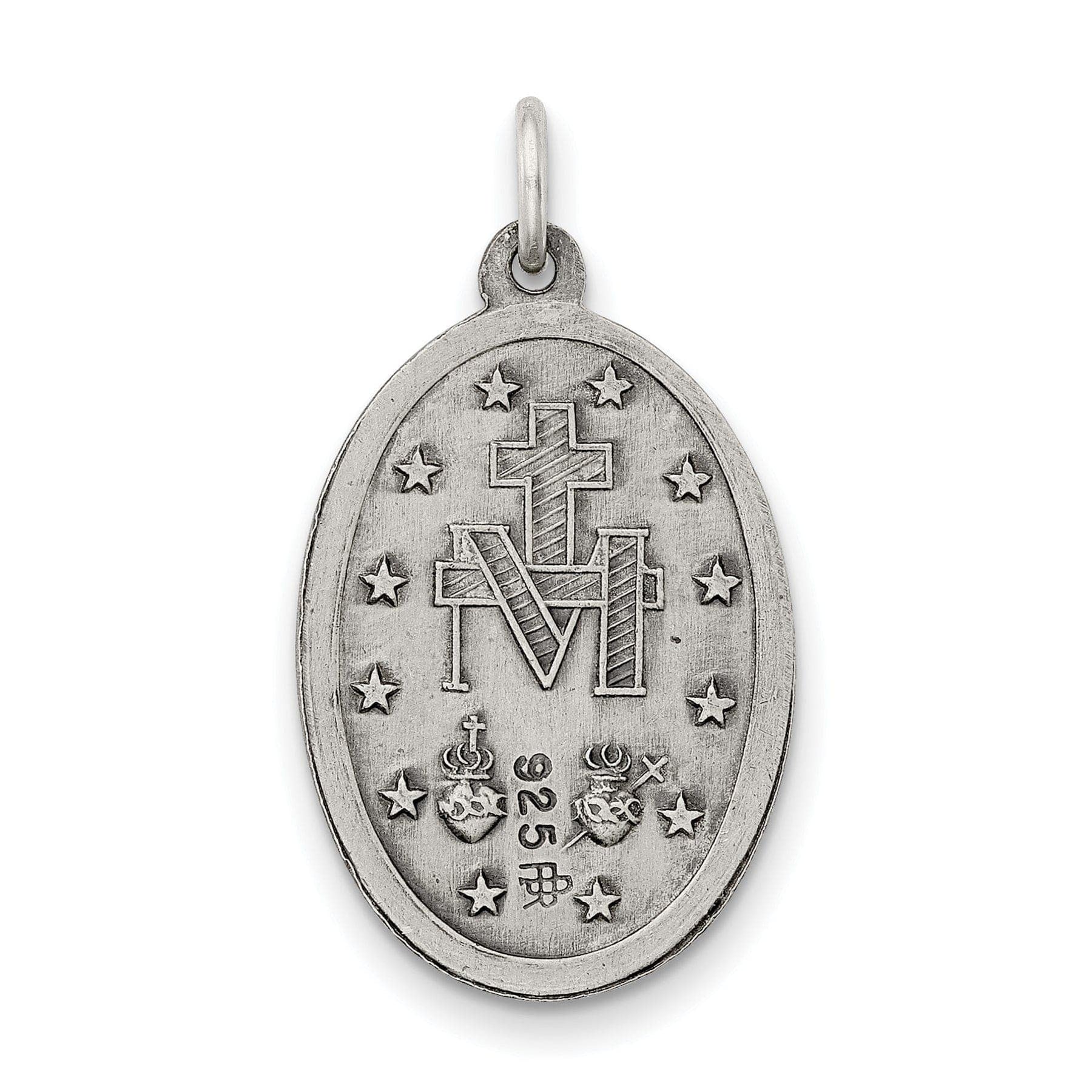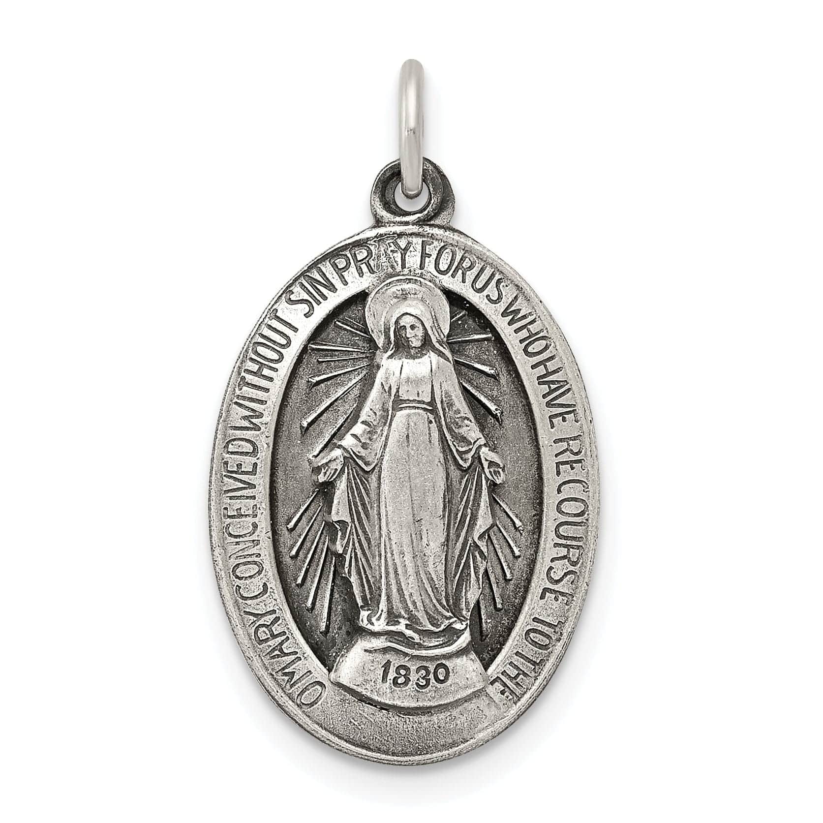 The Sterling Silver Antiqued Miraculous Medal is a beautiful piece of religious jewelry that pays homage to the Virgin Mary. Made of genuine sterling silver, this medal has an average weight of 2.25 grams, making it lightweight and comfortable to wear. The intricate design features an antique finish, giving it a timeless and classic look.